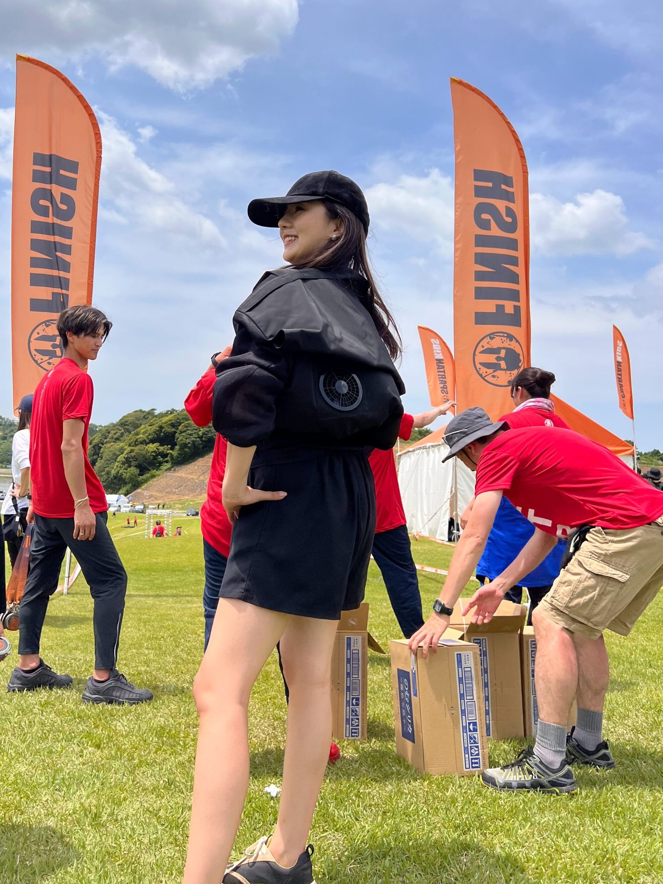 炎天下のスパルタンレースで、ウィンドブロワーMA-1の着用実験をしているお写真