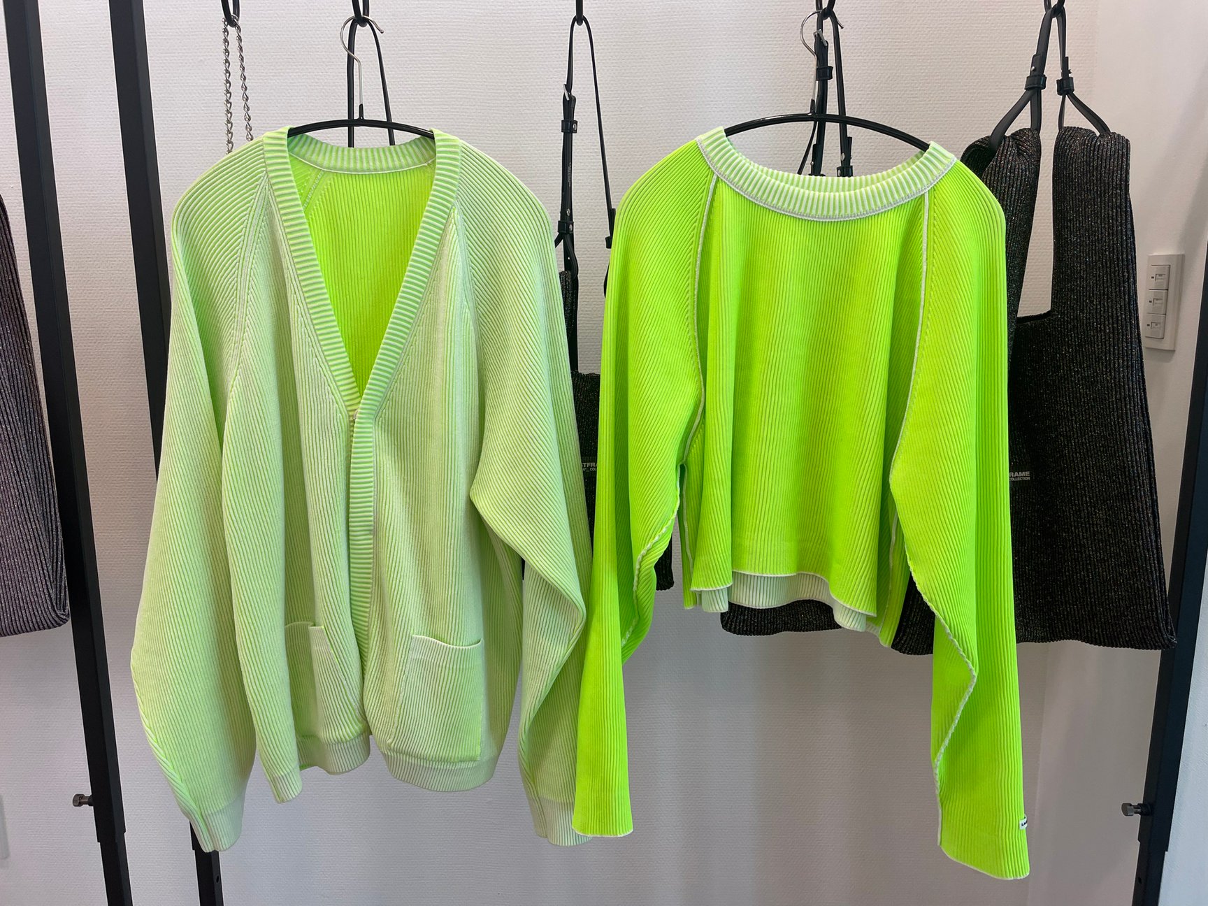 アパレルアイテムは、ブランドの「国、時代、シーズン、性別など何ものにもとらわれることなく、ボーダレスに愛され続け、受け継がれるデザイン」というフィロソフィーを反映させるために、ユニセックス?ワンサイズで用意。タンクトップ(2万3000円)、半袖Tシャツ(2万7000円)をはじめ、リバーシブル仕様のショート丈プルオーバー(3万円)、プルオーバー(3万3000円)、カーディガン(3万6000円)、ジッパーカーディガン(3万8000円)の全6型を5色展開する。