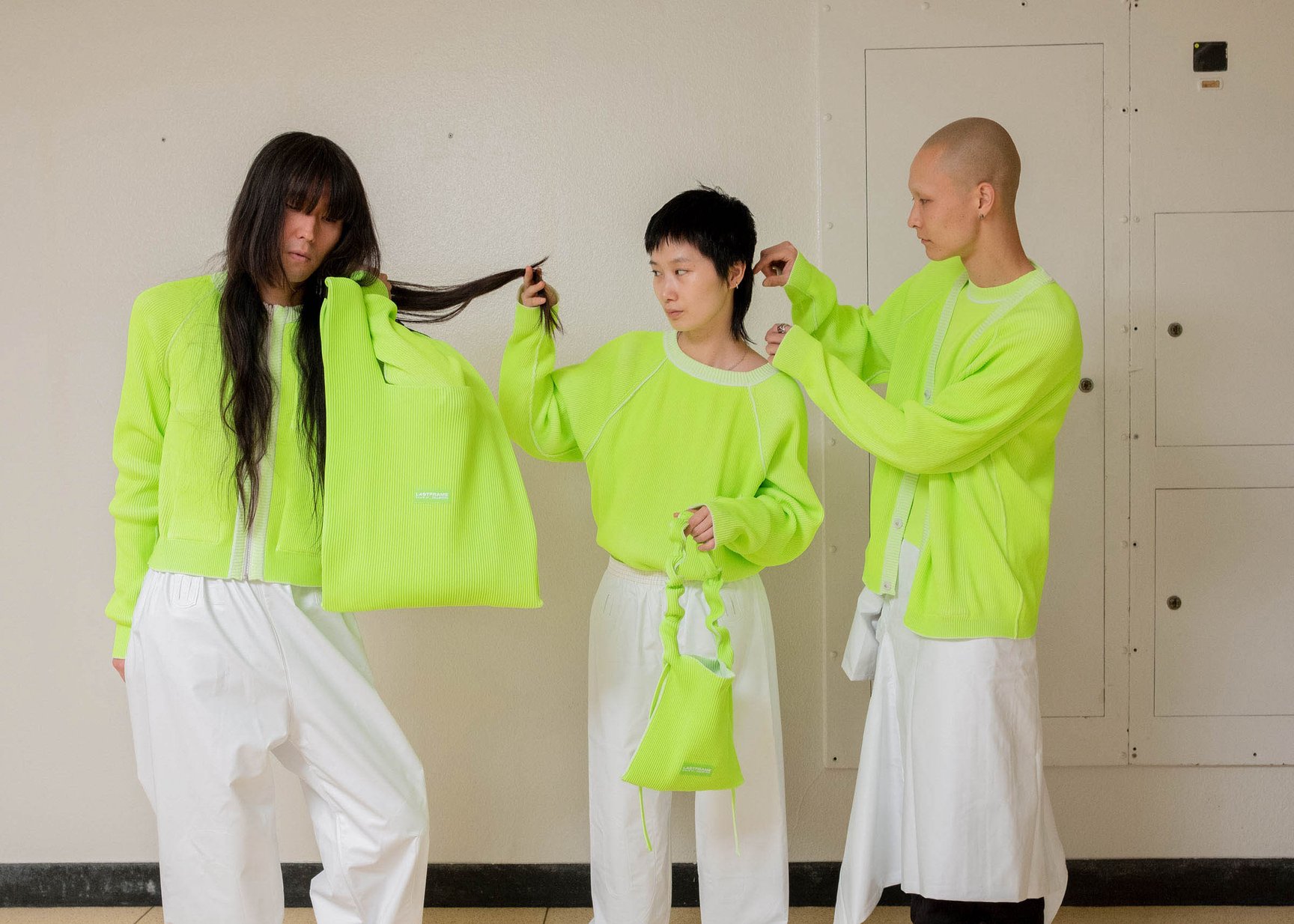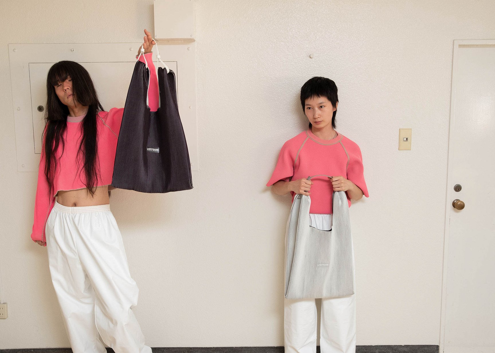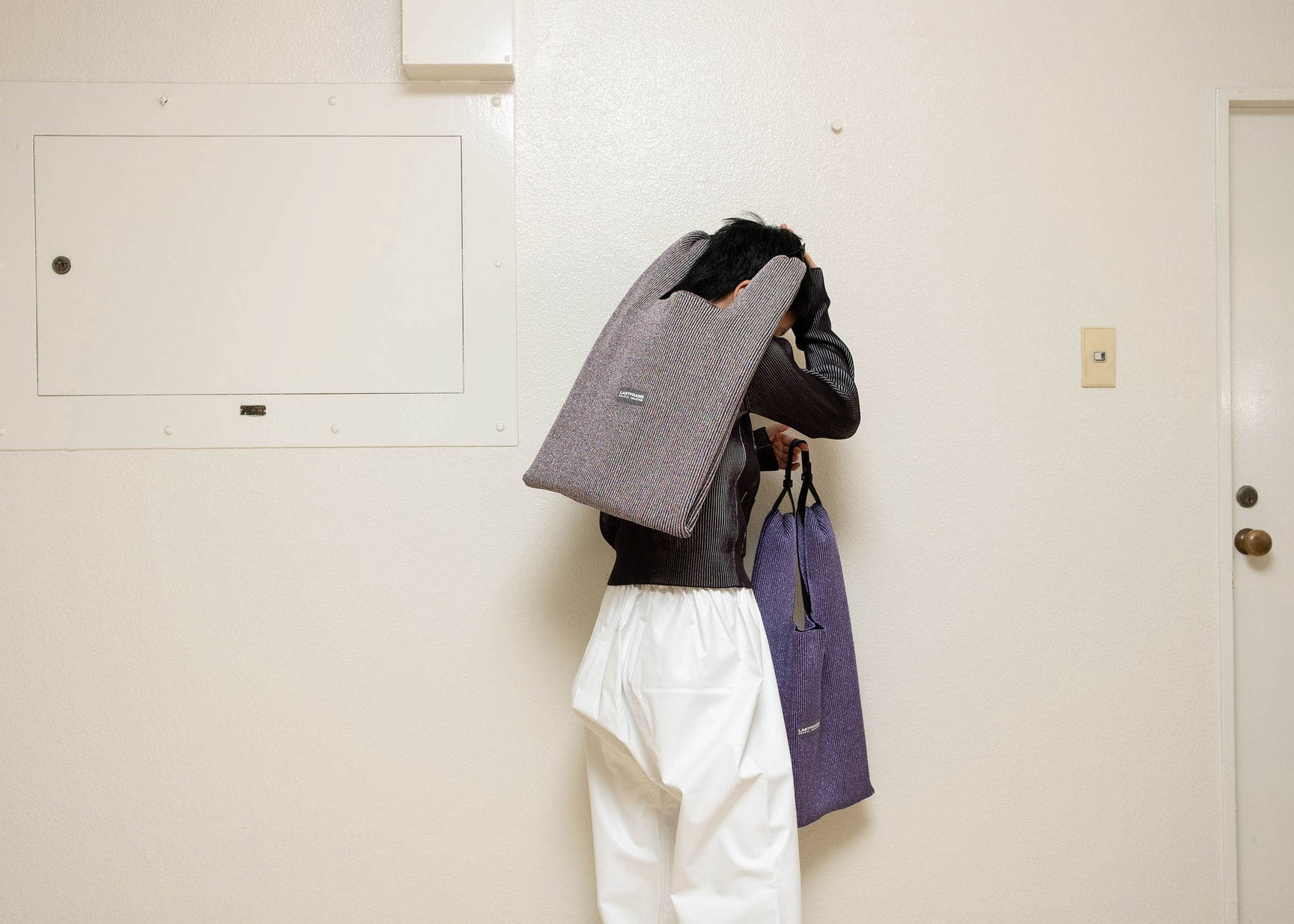 デザイナー奥出貴ノ洋は、2018年のブランドデビューから5年目を迎えた今、アパレルラインを展開した理由について「バッグというプロダクトのの延長としてアパレルラインを捉えていて、いつかはやろうと思っていた」と明かし「トップスとボトムスの合わせ買いではなく、トップスとバッグの組み合わせを提案していきたい」と話した。