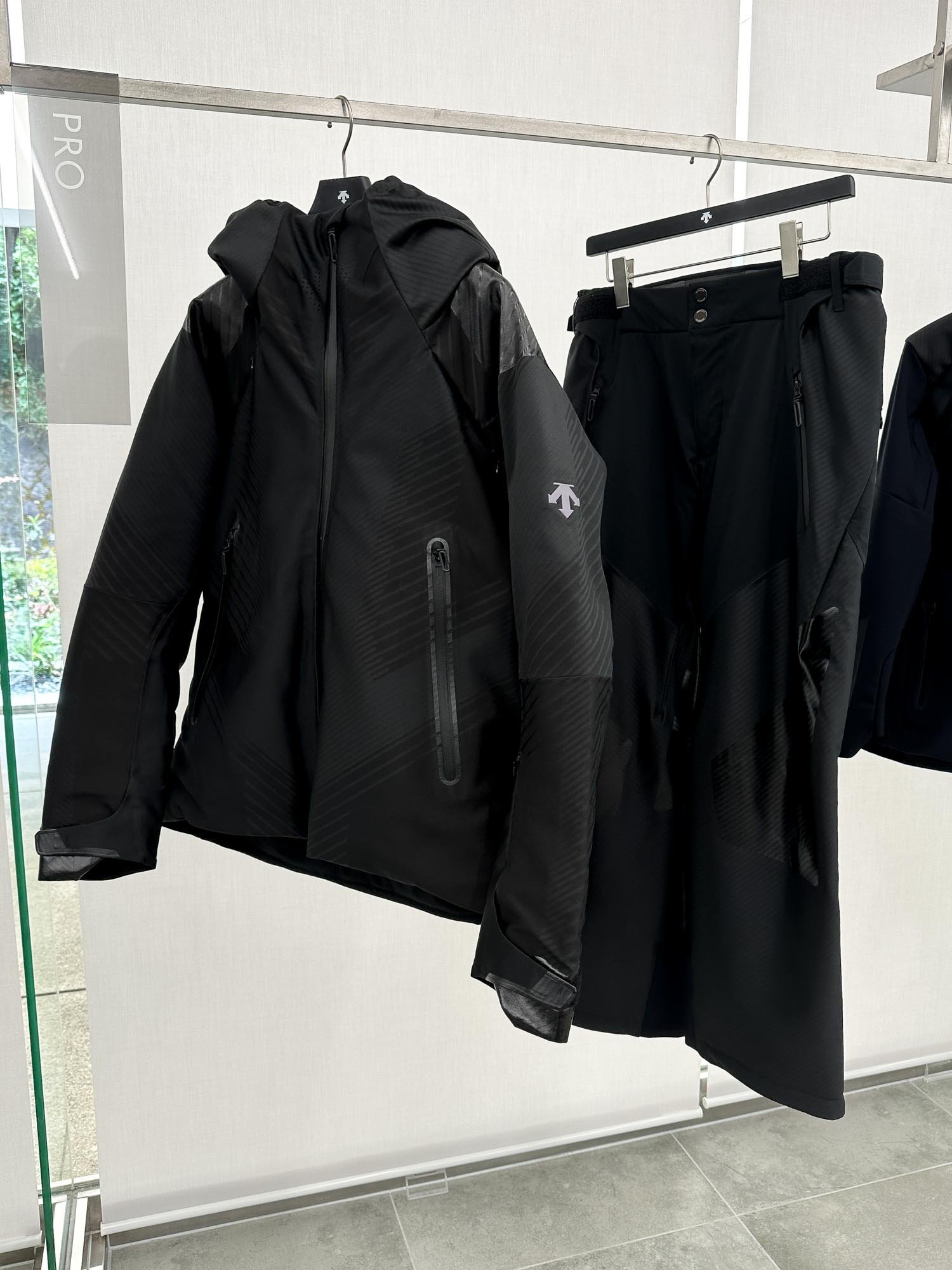 ファーストシーズンとなる2023年秋冬シーズンは、生地の縫い目が肌あたりのストレスや競技中の空気抵抗に繋がることから、1枚の生地を密度の差や特殊な融解技術を用いて、部位ごとに異なる伸縮性や保温性といった機能変化を持たせた独自開発技術「スキーマテック(Schematech?)」を全カテゴリーに採用。デサントの研究開発拠点「DISC(DESCENTE INNOVATION STUDIO COMPLEX)OSAKA」での研究と組み合わせ、「トレーニング」「ゴルフ」「スキー」の3つのそれぞれの競技シーンに適したパターン設計で、パフォーマンスの向上やストレス軽減をサポートする。アイテムは、冷風への対策を考慮し、汗をかきやすい部分の通気性を高めた「トレーニング」がランニングジャケット(5万2800円)とランニングパンツ(4万9500円)の2型、スイングやアドレス時などゴルフ特有の動作を考慮した「ゴルフ」がダウンジャケット(17万6000円)、ダウンパンツ(11万円)、スウェット(8万8000円)の3型、高い保温性や衣服内の蒸れを排出するベンチレーション機能を搭載した「スキー」がウィンタージャケット(22万円)とウィンターパンツ(8万8000円/すべて税込)の2型と絞った型数で展開。デサントマーケティング部門 部門長代行の大辻俊作氏は「デサントにとっても挑戦的なコレクション」と説明し、同コレクションで培った技術力を他カテゴリーに落とし込んでいくことを目的としており、今後型数を増やしていく意向はあるものの、高い基準を設けて課題解決に繋がるアイテムのみ展開していくという。売上目標は非公開で、大辻氏は「デサントプロは売上拡大を目指すものではなく、デサントのスポーツウェア開発の姿勢を示すコレクションと位置付けている」とコメントした。