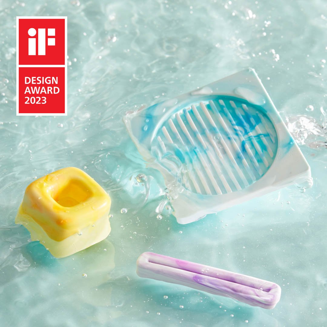 ポップアップでは、2023年に国際的なデザイン賞「iFデザインアワード」を受賞した「リサイクルプラスチックバスルームセット」などのオリジナルグッズを販売する。会場では、小さなプラスチックゴミを色別に分類し、粉砕機で細かく素材化した後、金型射出によってリサイクルプラスチックグッズが完成するまでの過程も披露する。?プラスチック射出を無料で体験できるワークショップでは、代官山 蔦屋書店限定のしおりを作成することができる。