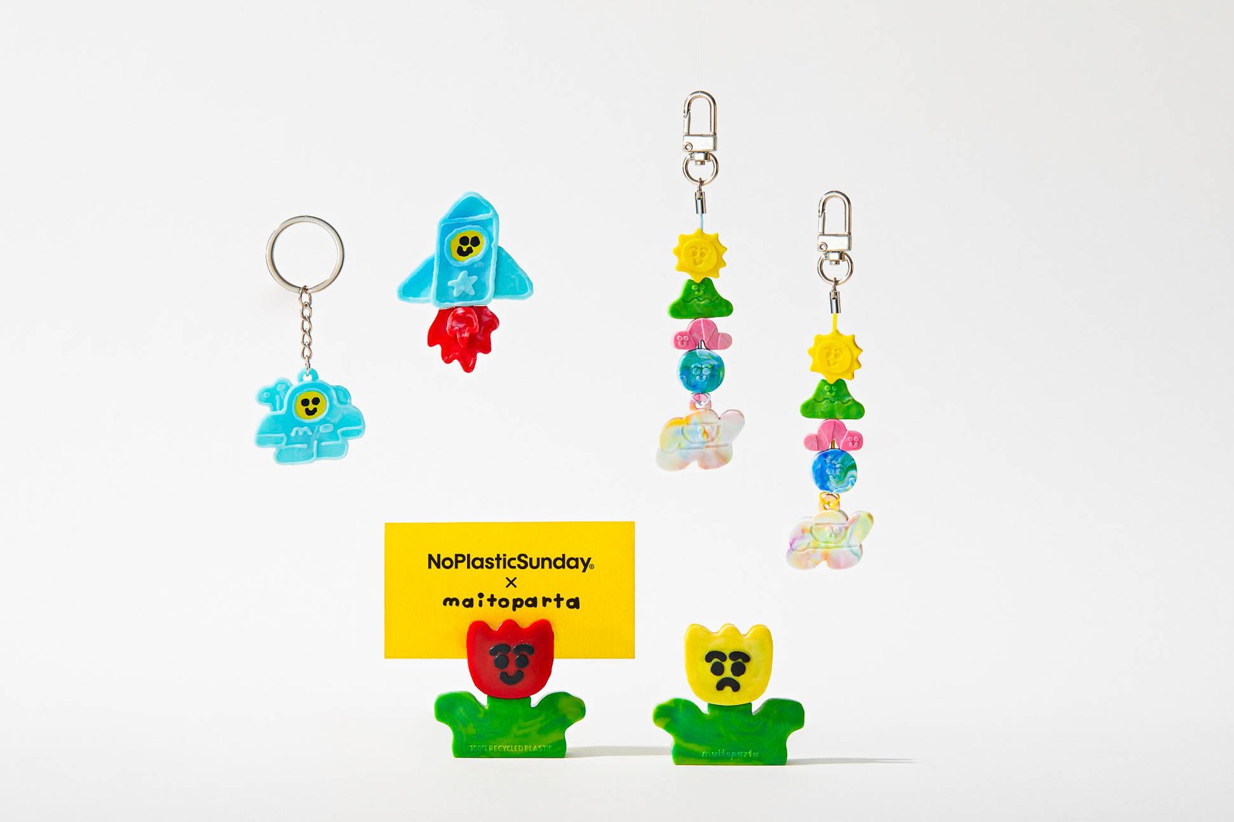 ノープラスチックサンデーは、100%リサイクルプラスチックの素材化から、金型設計、射出までの製造工程をワンストップサービスで提供。サムスンや「BT21」など、韓国で約190以上のブランドやクリエイターとのコラボレーション実績があり、独自技術と透明性のある事業展開で支持を得ている。「使用済みのプラスチックを有効活用する選択肢をつくりたい」という想いからブランドを立ち上げ、誰もが手軽にリサイクルプラスチックでグッズ製作ができる環境づくりを通して、リサイクルプラスチックという選択肢を広く普及させることを目指している。