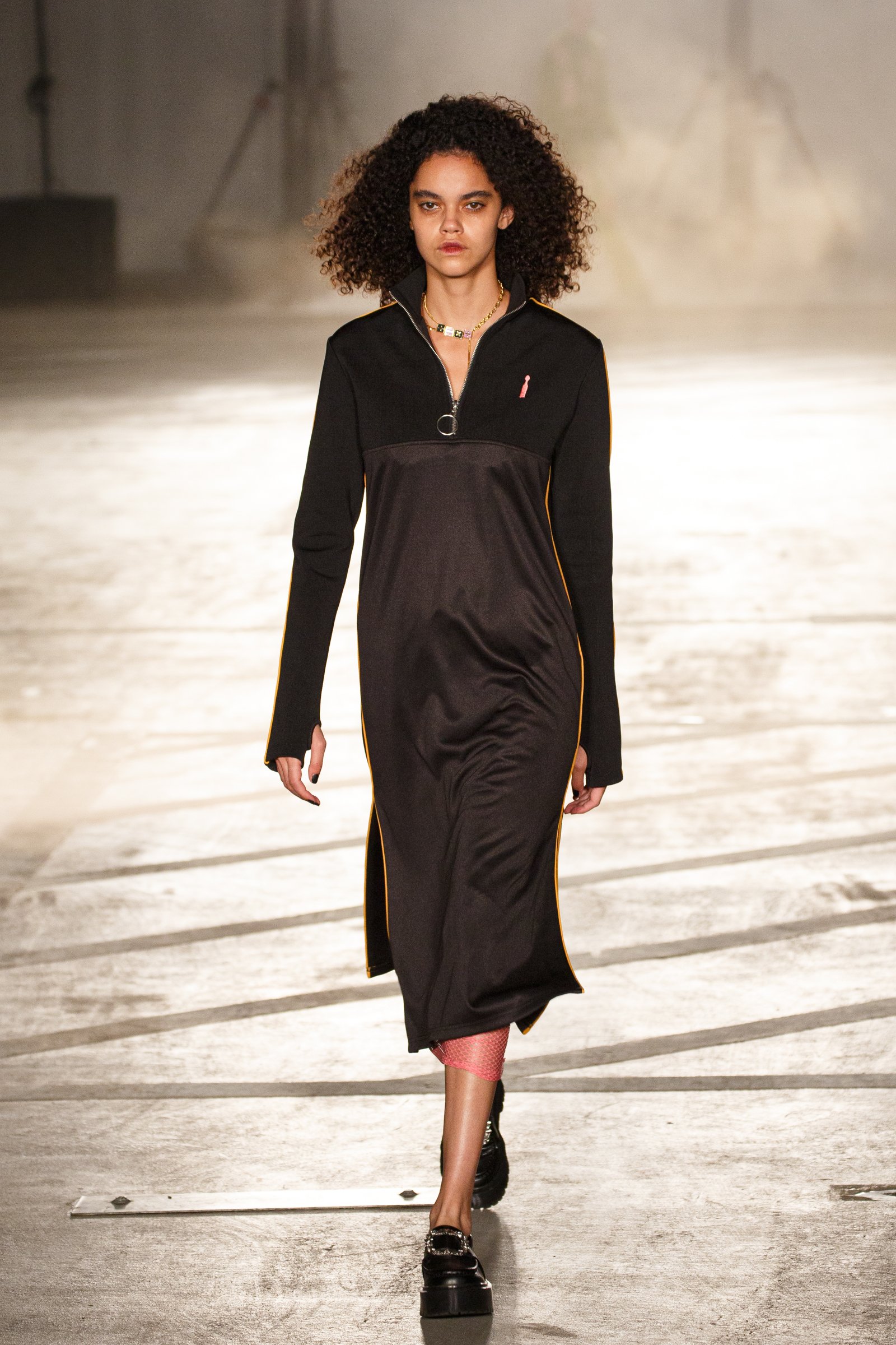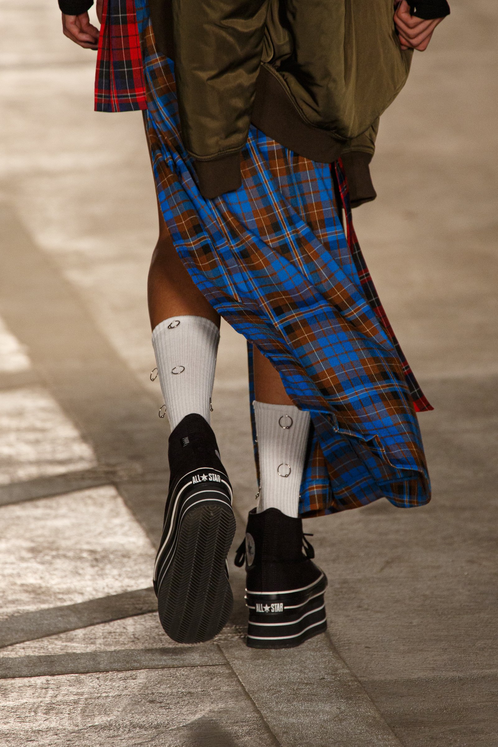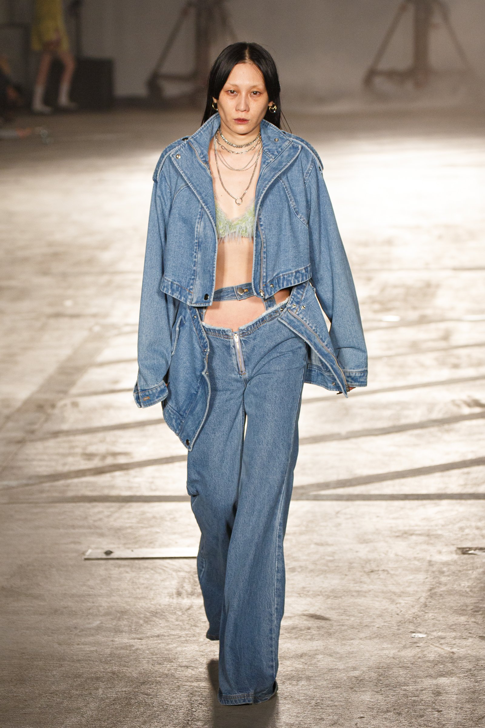 今回のショーは、フリルやレースを使用したガーリーなルックからデニム生地のセットアップ、MA-1など構成したボーイッシュライクなルック、黒のシアー素材やチュールを用いたワンピースでシックな雰囲気をまとったルックなどを披露。その中には「コンバース(CONVERSE)」とコラボレーションした約8㎝の厚底スニーカーと、アイウェアブランド「イナリ(INARI)」とコラボした子犬のような耳のデザインがポイントのサングラスが登場した。