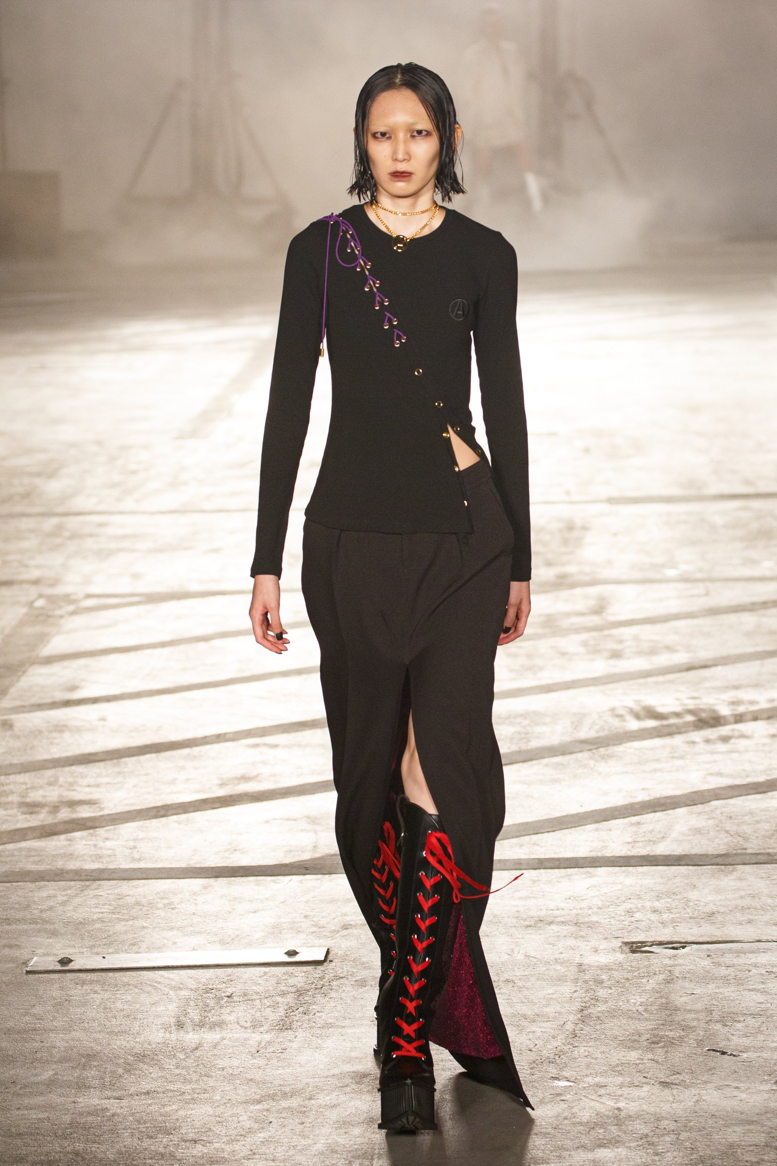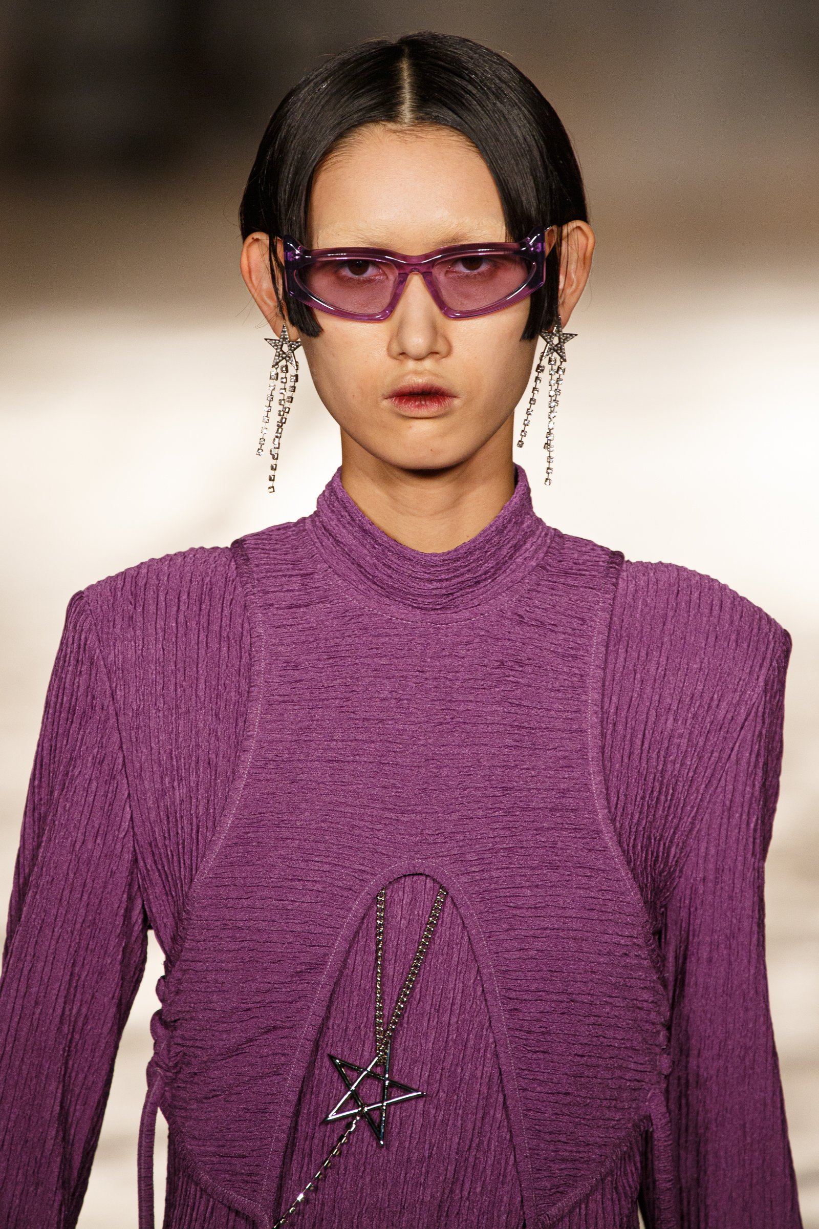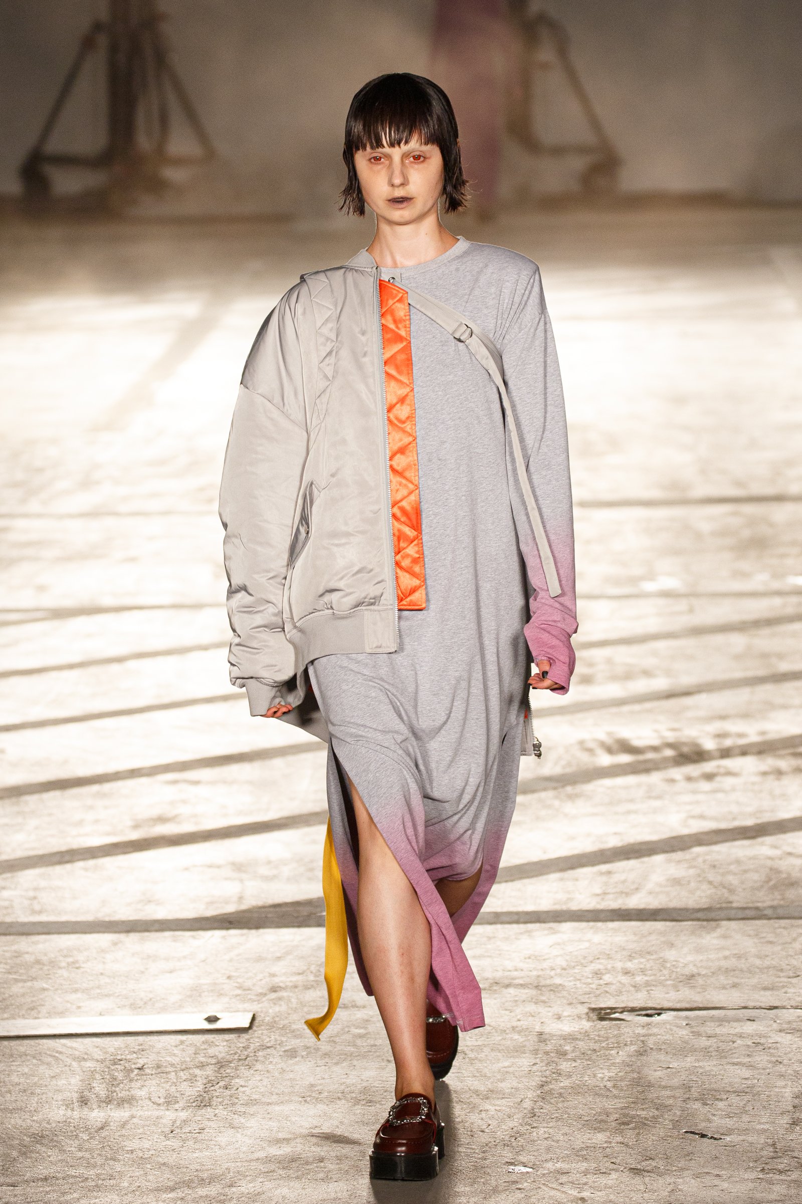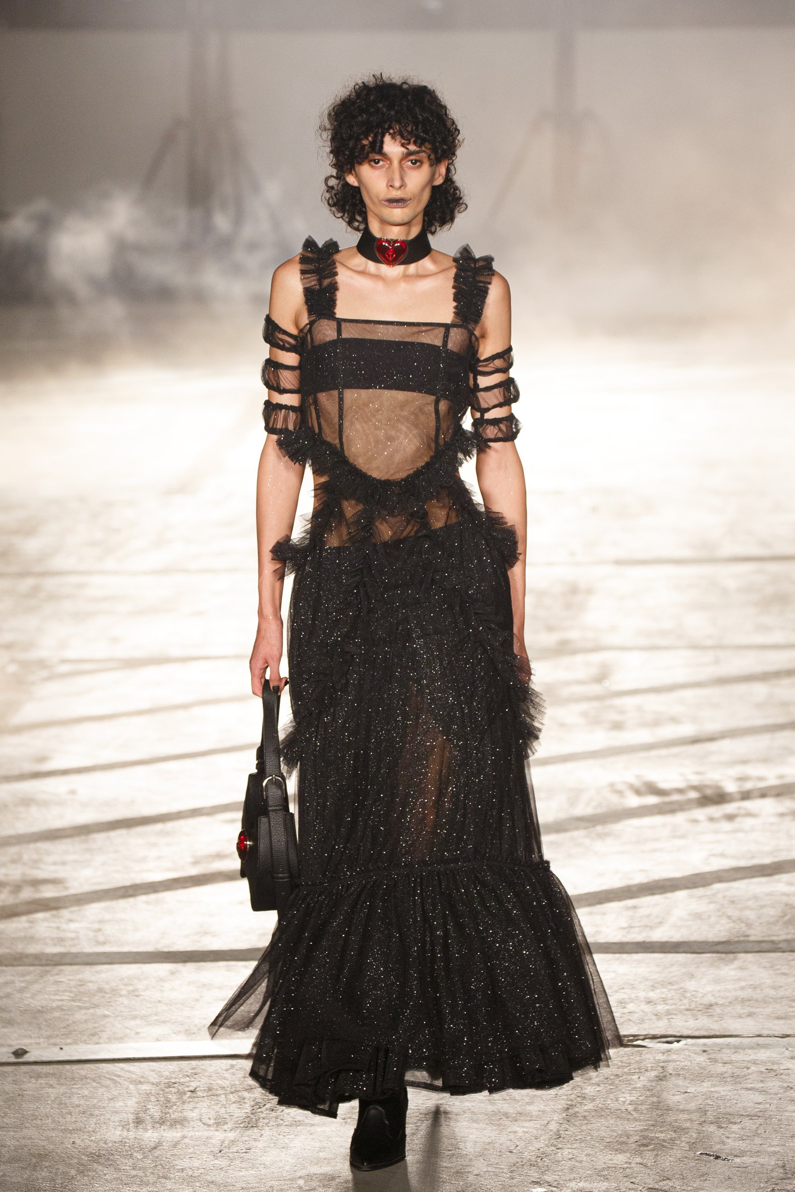 今回のショーは、フリルやレースを使用したガーリーなルックからデニム生地のセットアップ、MA-1など構成したボーイッシュライクなルック、黒のシアー素材やチュールを用いたワンピースでシックな雰囲気をまとったルックなどを披露。その中には「コンバース(CONVERSE)」とコラボレーションした約8㎝の厚底スニーカーと、アイウェアブランド「イナリ(INARI)」とコラボした子犬のような耳のデザインがポイントのサングラスが登場した。