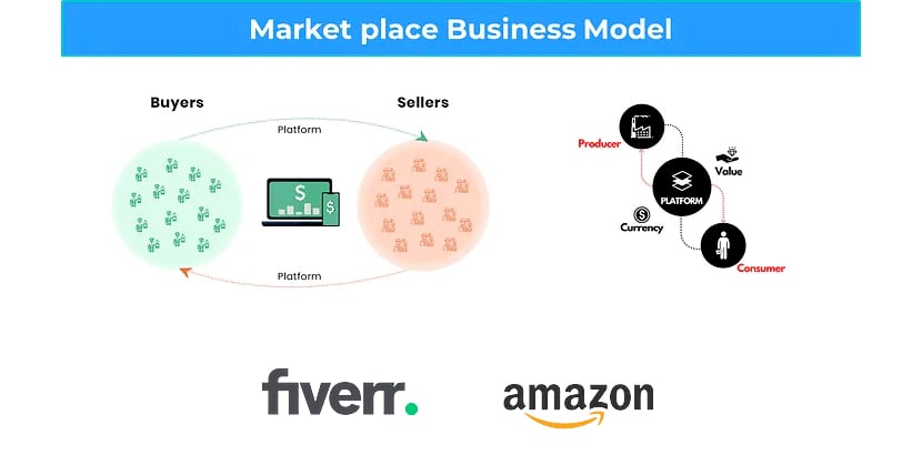 AmazonやFiverrのようなマーケットプレイスは、ベンダーとユーザーを結びつける役割を果たすが、ベンダー自身のブランド名で商品を販売する。