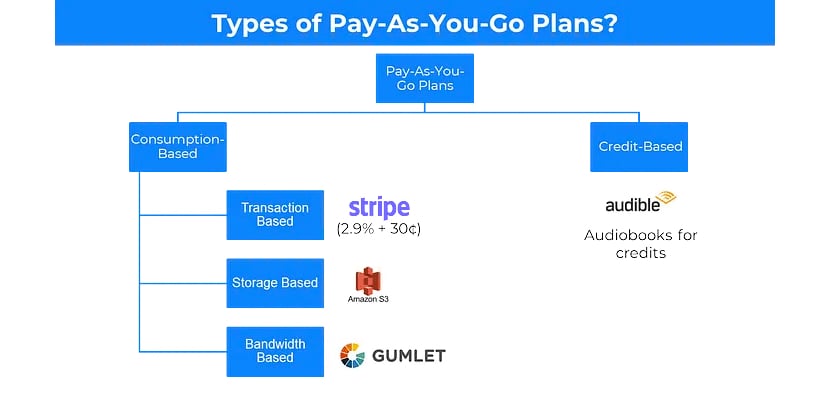 従量課金ビジネスモデルはクラウド?コンピューティングサービスで特に広く使われている。例えば、アマゾン?ウェブ?サービス(AWS)はアマゾンの子会社で、200以上のクラウドサービスを提供しており、各サービスには独自の従量課金制がある。