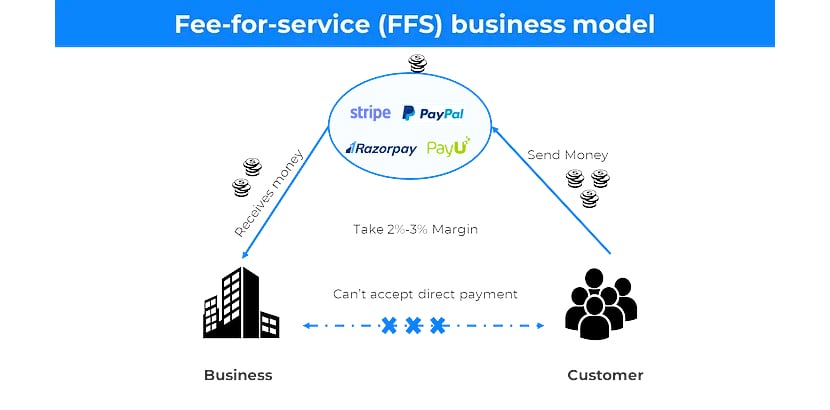 FFSビジネスモデルでは、ユーザーが決済を行うたびにサービス提供側は固定手数料と変動手数料を得る。Fintechスタートアップに適応されることが多いビジネスモデルだ。