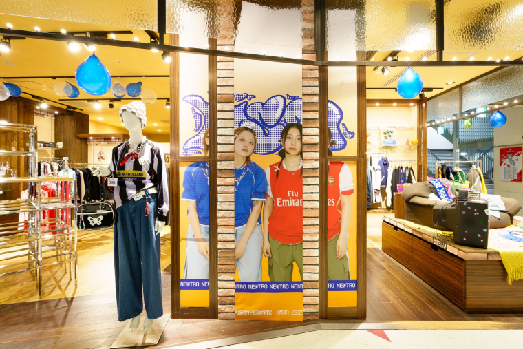 企画にあたっては、Z世代に人気の韓国アイドル「ニュージーンズ」に着目し、80、90年代の韓国ファッション、ストリートカルチャーを現代風に解釈し、〝エモさ?を漂わすことを狙った。若者には新感覚、20代後半~30代には懐かしさを感じてもらえるような感性を刺激するスタイルの提案を目指した。