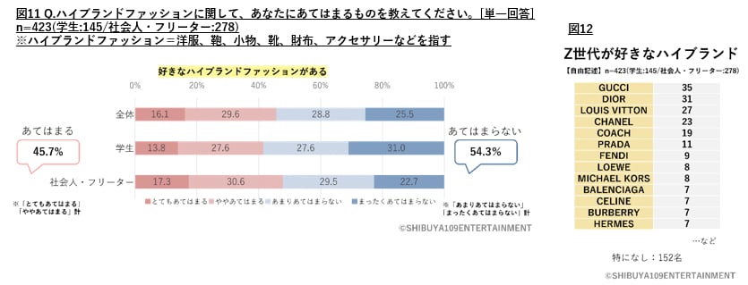 SHIBUYA109エンタテイメントが運営する若者マーケティング機関「シブヤイチマルキュウラボ(SHIBUYA109 lab.)が、「Z世代のハイブランドに関する意識調査」を行い、その結果を発表した。