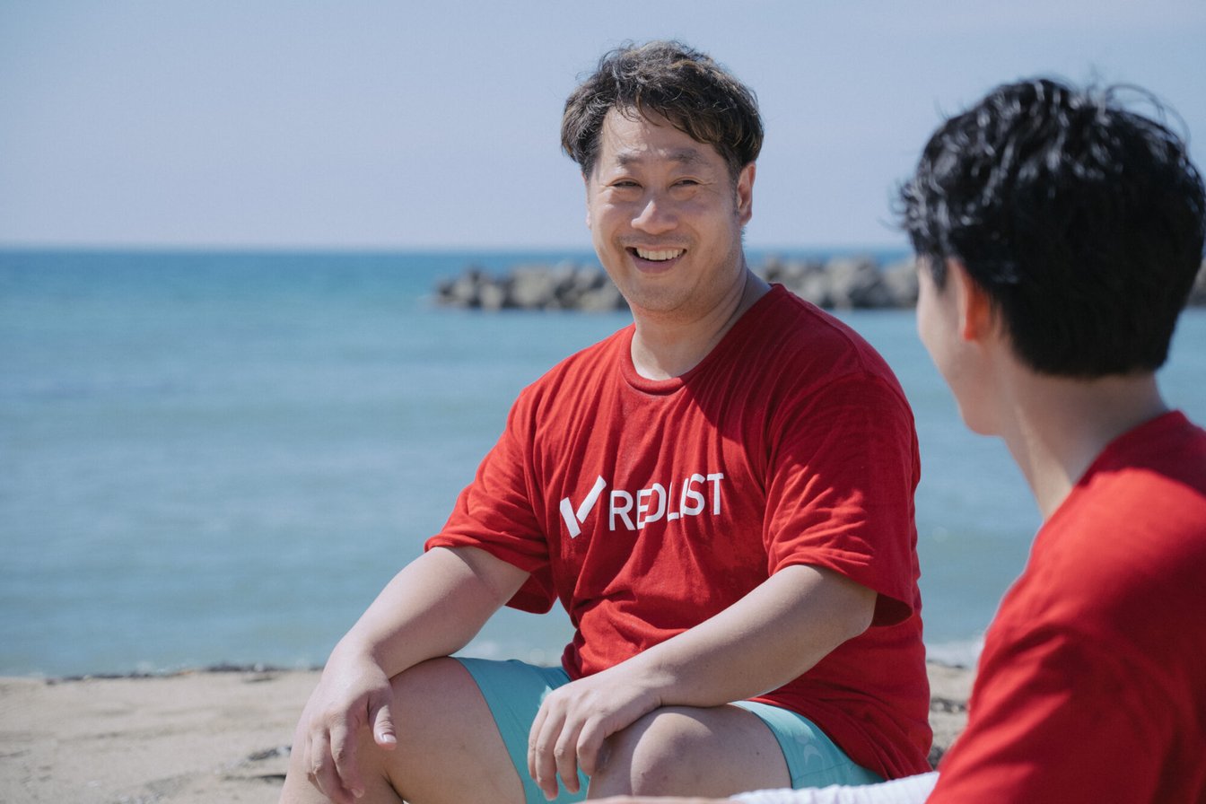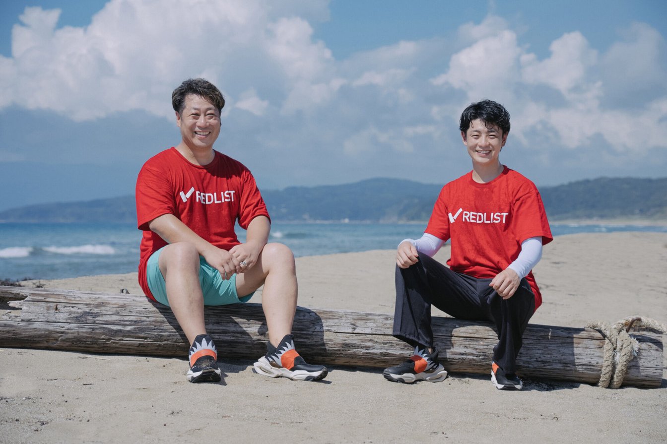 株式会社フリックフィットが運営する次世代型ファッションブランド「REDLIST(レッドリスト)」と佐渡を拠点に活動をする太鼓芸能集団「鼓童」。2023年8月18日~20日に佐渡で開催された国際芸術祭「アース?セレブレーション」の会期中にはともにビーチクリーン活動を行なったり、佐渡の縫製工場で作られた<Made in Sado>のコラボ法被(はっぴ)を製作するなど、気鋭のファッションブランド×世界的な太鼓芸能集団の新しいコラボレーションが誕生している。今回、出身地が佐渡島であるフリックフィット代表の廣橋氏と、鼓童で10年活動を続けている北林氏との対談を佐渡島で行い、お二人の佐渡島に対する想いや考え、ルーツ、今後の展望についてお伺いした。