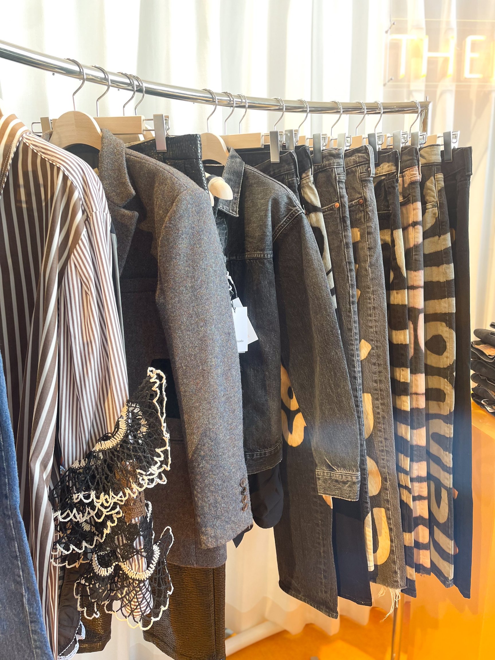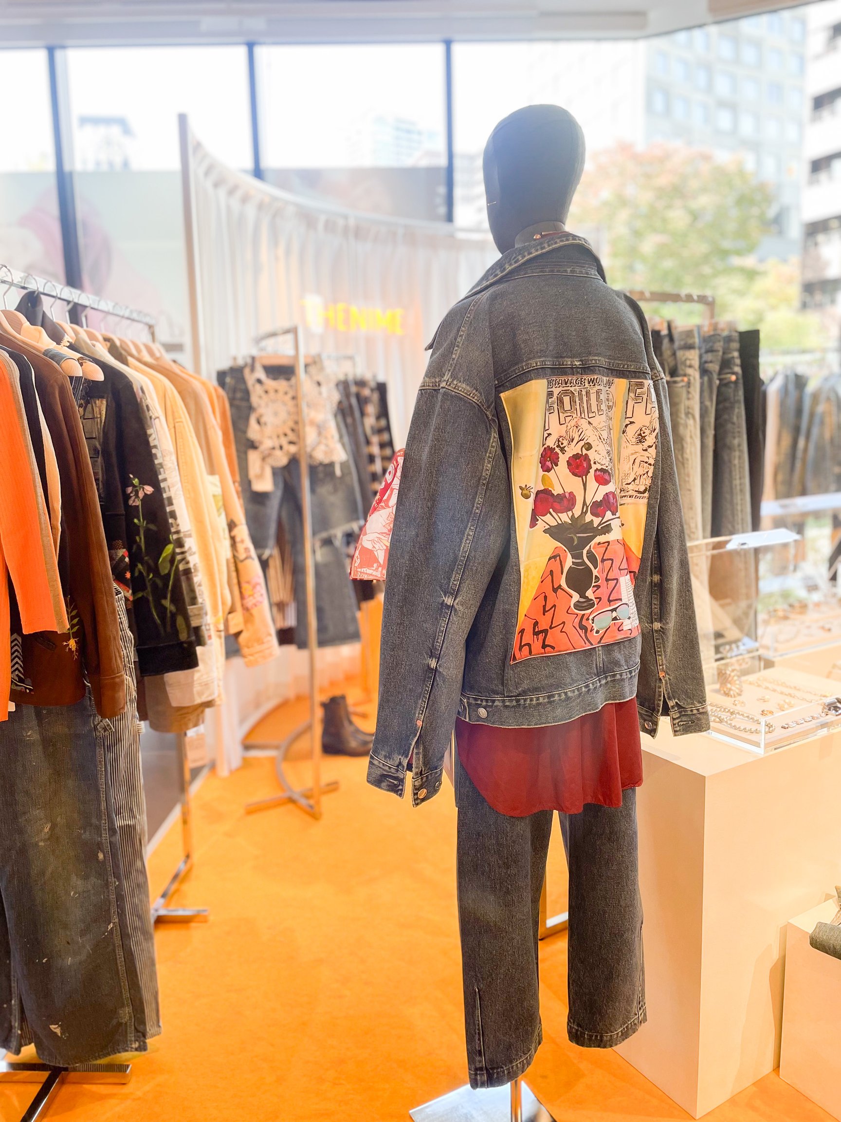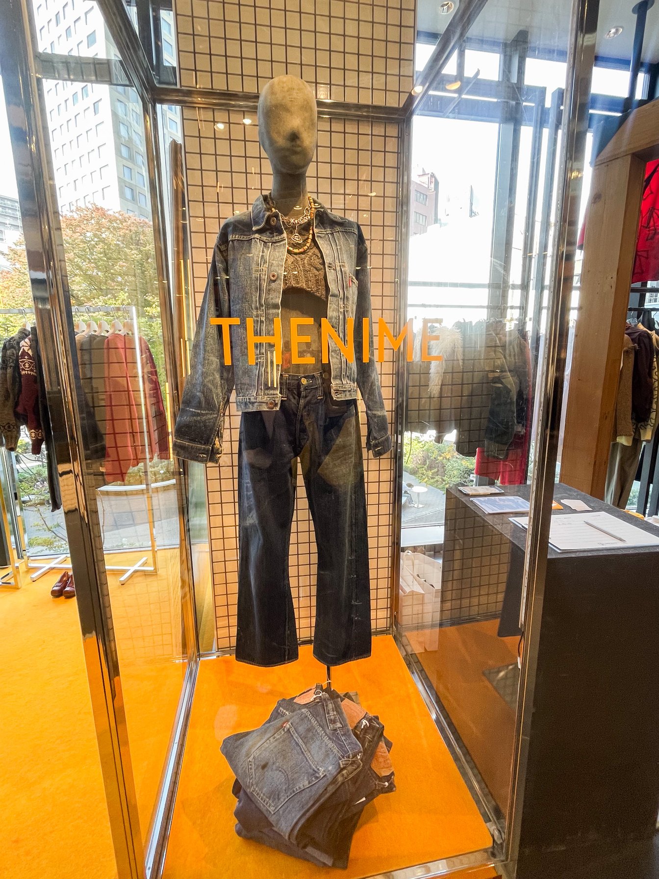ザニームでは年々市場価値が高まるヴィンテージデニムに着目。「虎ノ門ヒルズ ステーションタワー」の核テナントとなる「SELECT by BAYCREW'S」のオープンにあたり、ベイクルーズからのオファーを受けて長尾自身が売り場の一部となるコンセプトを考案した。名称は、デニム生地の誕生の地とされる南フランスのニーム地方の「ニーム(NIME)」と、デニムスタイルが生まれたアメリカの雰囲気を表す「ザ(THE)」を組み合わせて名付けた。「いろいろブランドが集まっている中で個性を出すには何かにフォーカスした方がいいと考えた時に、デニムが一番わかりやすく、また、ヴィンテージデニム自体も世の中の市場価値が上がっている。私自身もデニムスタイルを物心がついた時から親しんできたので、しっくりきた」(長尾)。ポップアップおよび常設店舗ともに、店頭ではヴィンテージデニムに加えて、デザイナーズブランドなどのデニム商品と、長尾の審美眼でセレクトしたアパレル商品を展開し、「ヴィンテージ×コンテンポラリー」のスタイリングを提案する。
