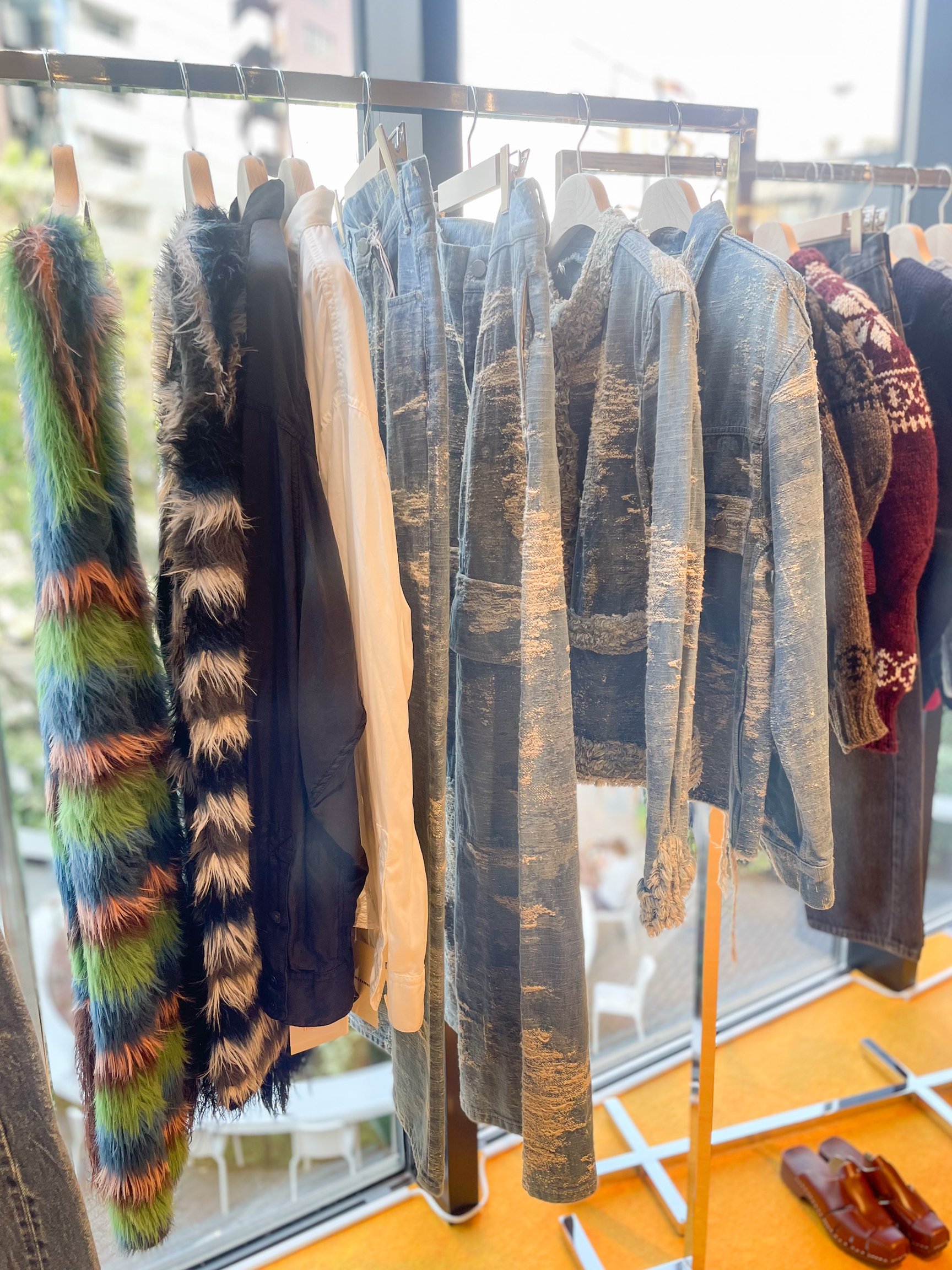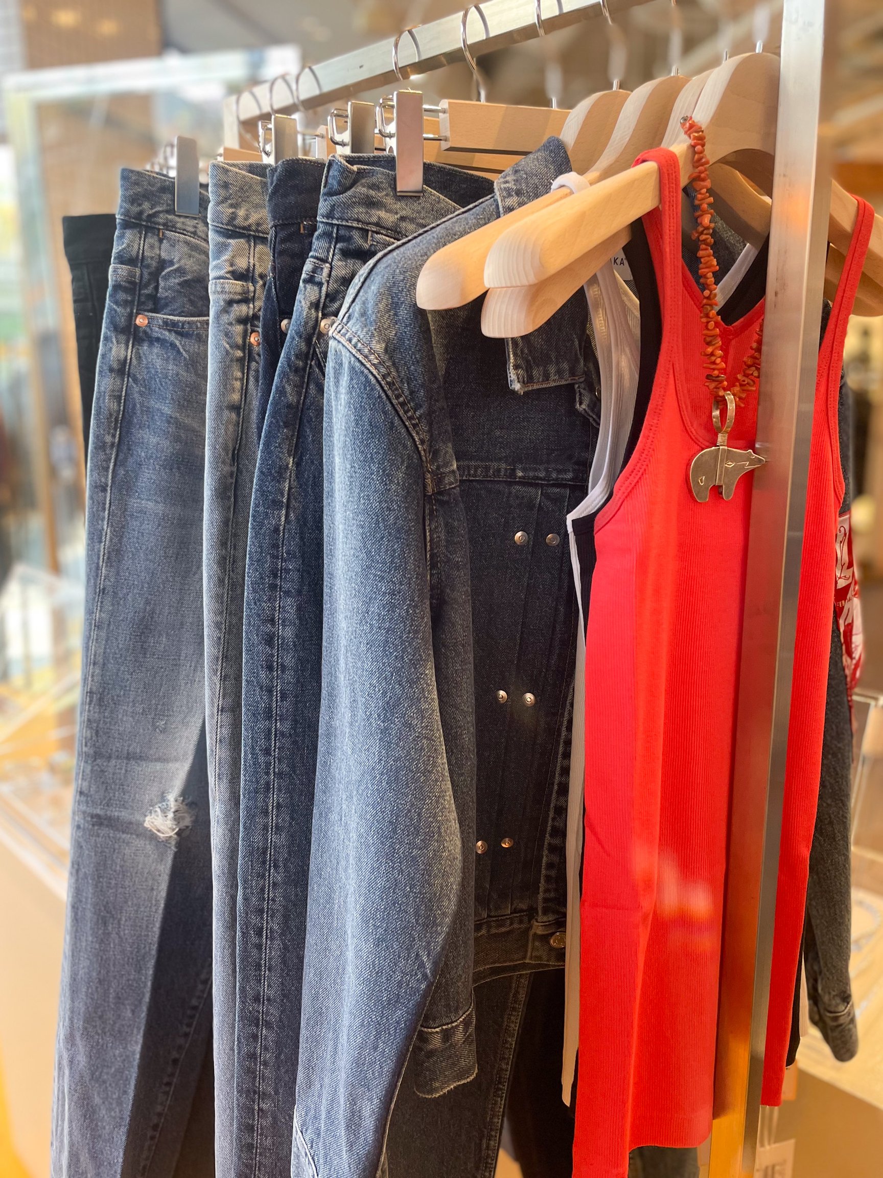 その他のデニム商品では「ターク(TAAKK)」や「タナカ(TANAKA)」、ブルックリンを拠点とした「インパーフェクトデニム(INPERFECT DENIM)」といったアイテムをラインナップし、デニム以外の商品では「シーエフシーエル(CFCL)」「キャサリン ハムネット(KATHARINE HAMNETT)」「ピリングス(pillings)」「ディオティマ(Diotima)」など、長尾が普段から愛用するブランドや、「今着たい」と感じたウェアを取り揃える。このほか、「ララガン(R.ALAGAN)」や長尾がアメリカやパリで買い付けた一点物のジュエリーを展開する。