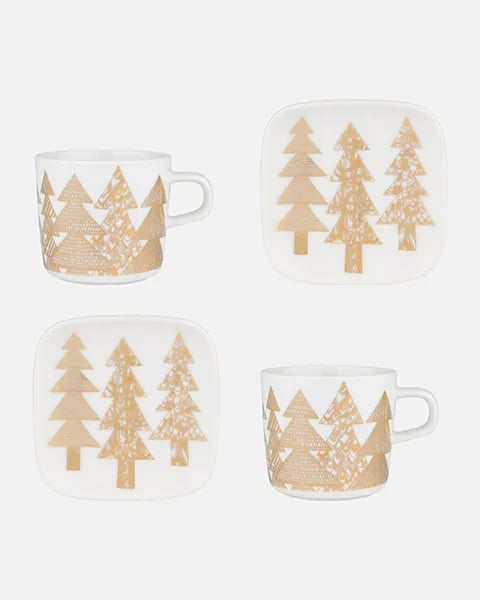 クリスマスツリーを想わせるような『クーシコッサ柄』は、この季節にうってつけ。ゴールドカラーでプリントされた「コーヒーカップ&プレートセット」(1万5400円)をテーブルに並べれば、一気にホリデームードが増しそうですね。