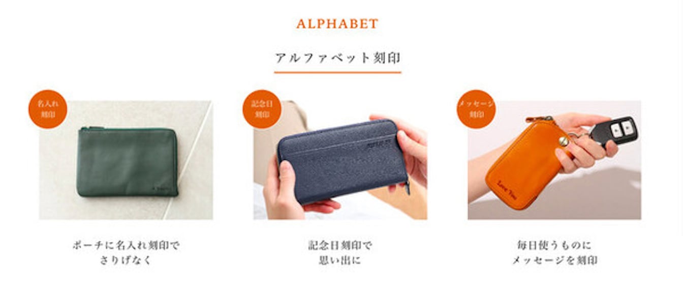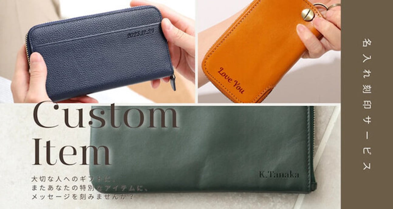 革製品を扱うBLUE SINCERE(フ?ルーシンシア)は、同社オンラインストア限定で購入した商品にネームやメッセージを刻印する「名入れ刻印サービス」を、11月11日(土)よりスタートした。