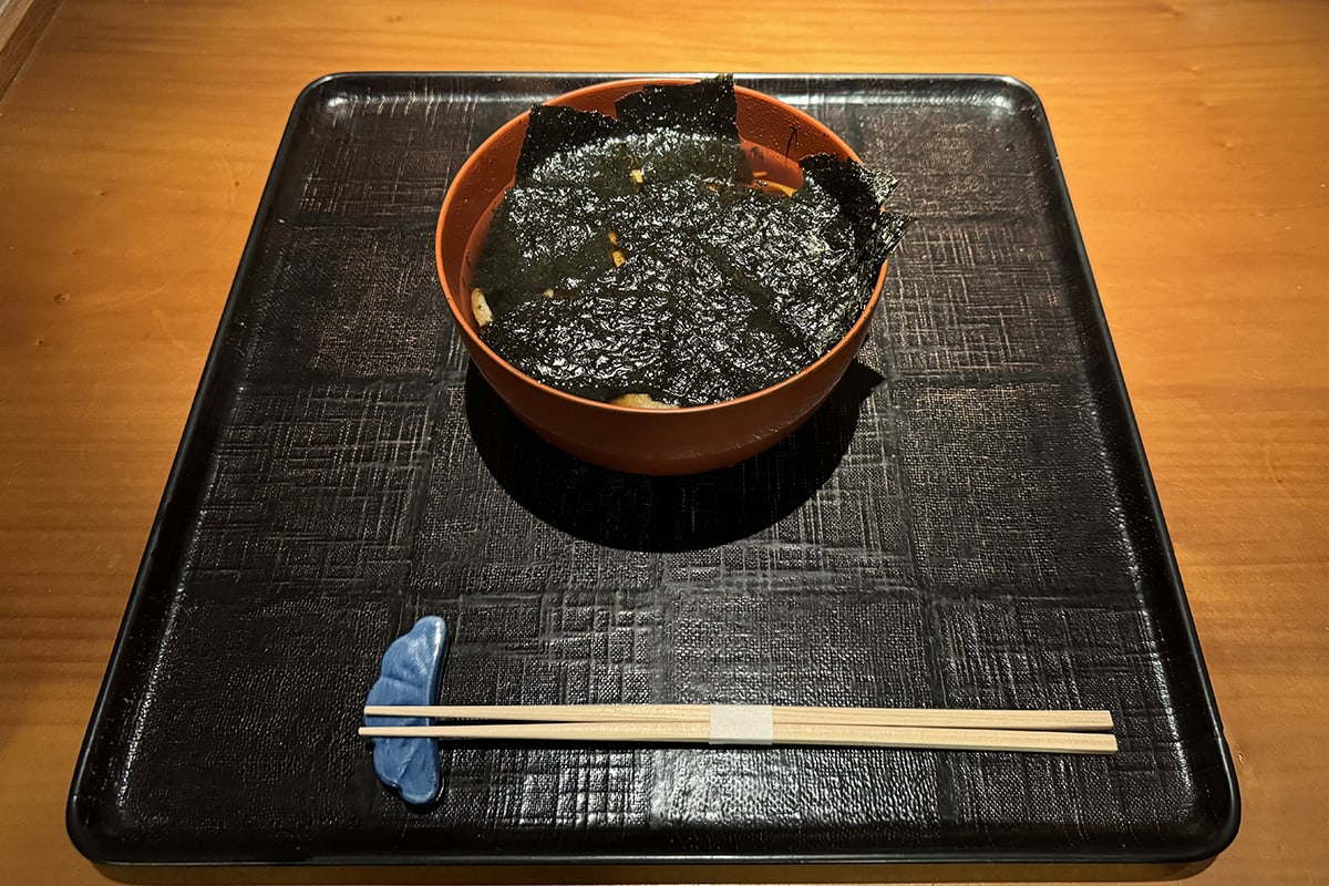 まさに名の通り“磯の花”に巻かれたそばを口に入れると、一気に海苔と蕎麦の香りが口一杯に広がっておいしい!シンプルだけど未体験の蕎麦に感動。薬味はお好みで山椒を。山と海の薬味が交わり、一層香りが高くなる。