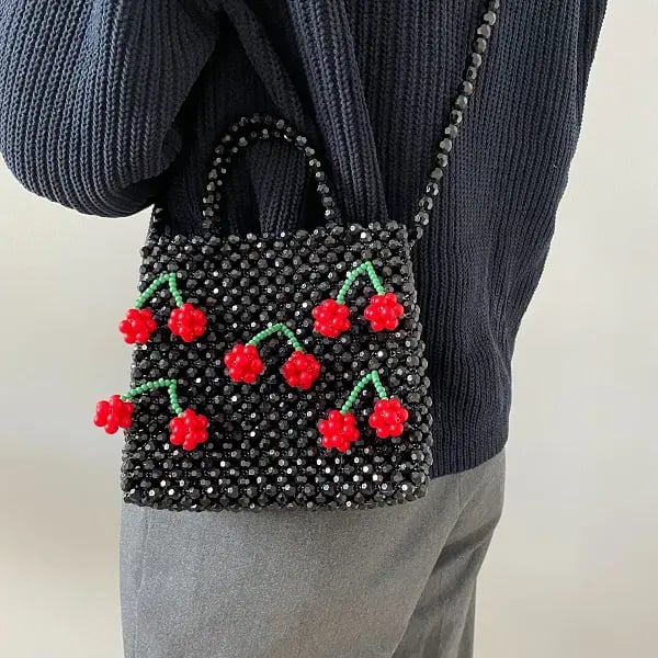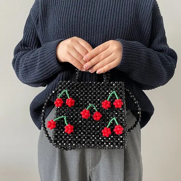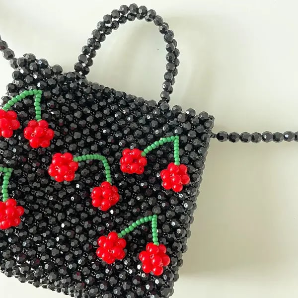 ユニークなビーズ製品を制作する「TOOS(トオス)」の「fresh cherries shoulder bag」(税込2万9700円)は、赤いチェリーが映えるショルダーバッグ。