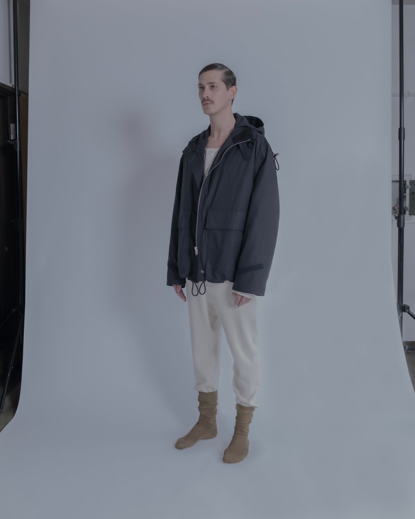 ファーストコレクションは、マサチューセッツ州ネイティックの米軍研究施設で1960年代後半から1980年代前半にかけて研究されていた、ユニフォームテーラリングの記録に着想。昨年末に会社を設立し、まだ整っていない環境で実験的なものづくりを行っているブランドの現状と、機能性を追求し試行錯誤していた研究施設のものづくりの姿勢を重ねた。研究施設があるネイティックという地名はマサチューセッツ族インディアンの言葉からきており、“我々が探す場所”という意味がある。他者視点に立つという「優しさ」を持って実用性を重視しながら独自の創作に打ち込んできたクリエイターたちの姿勢には、「エゴやパーソナリティを前面に押し出すものづくりとは異なり、人や世の中と繋がっていくという広がりがあると感じる」と上田。ファーストコレクションでは、実際にサンプルを自身で着用して生活することで、ユーザー視点で不便な点や着心地に難がある点を洗い出し改善を重ねたという。