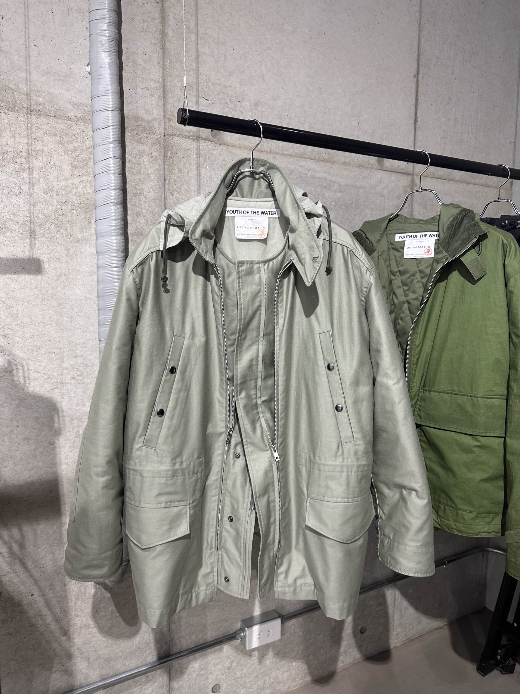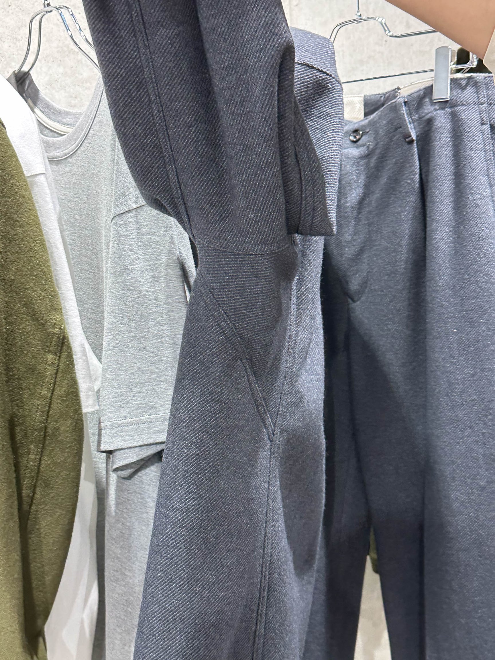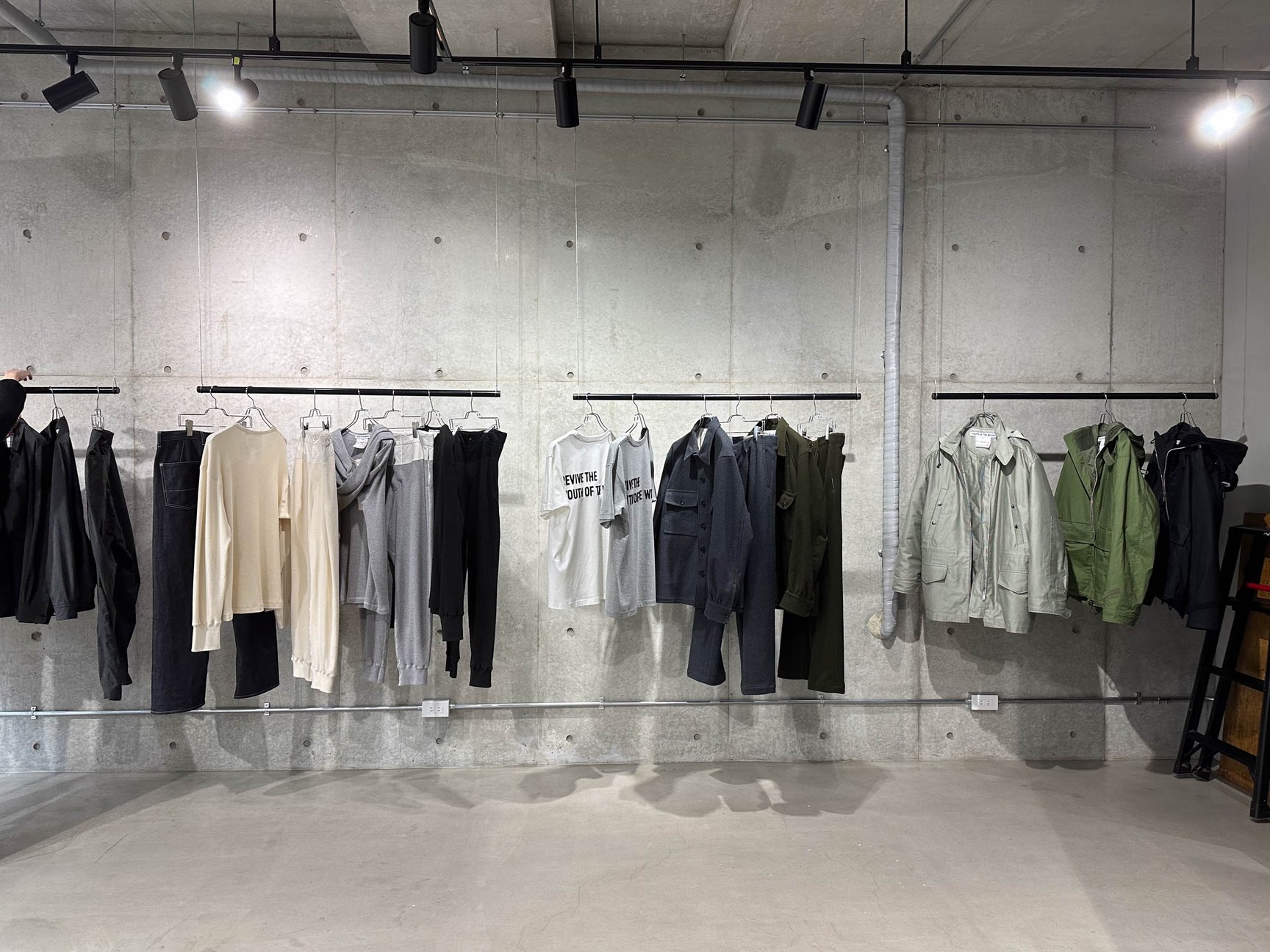 このほか、古着のディテールを採用し、インナーウェアに着想したトップス(3万800円)やパンツ(3万5200円)、フェルト刺繍でロゴを施したTシャツ(2万5300円)、オーダーメイドのテーラードジャケットに用いられる仕様を用いたニット地のジャケット(11万8800円)、セットアップのパンツ(7万9200円)、実験施設でM-65ジャケットを作る過程で実際に製作されていたサンプルを再現したジャケット(13万7500円)、オイルドの撥水生地で仕立てたラインジャケット(9万6800円)の計11型をラインナップする。