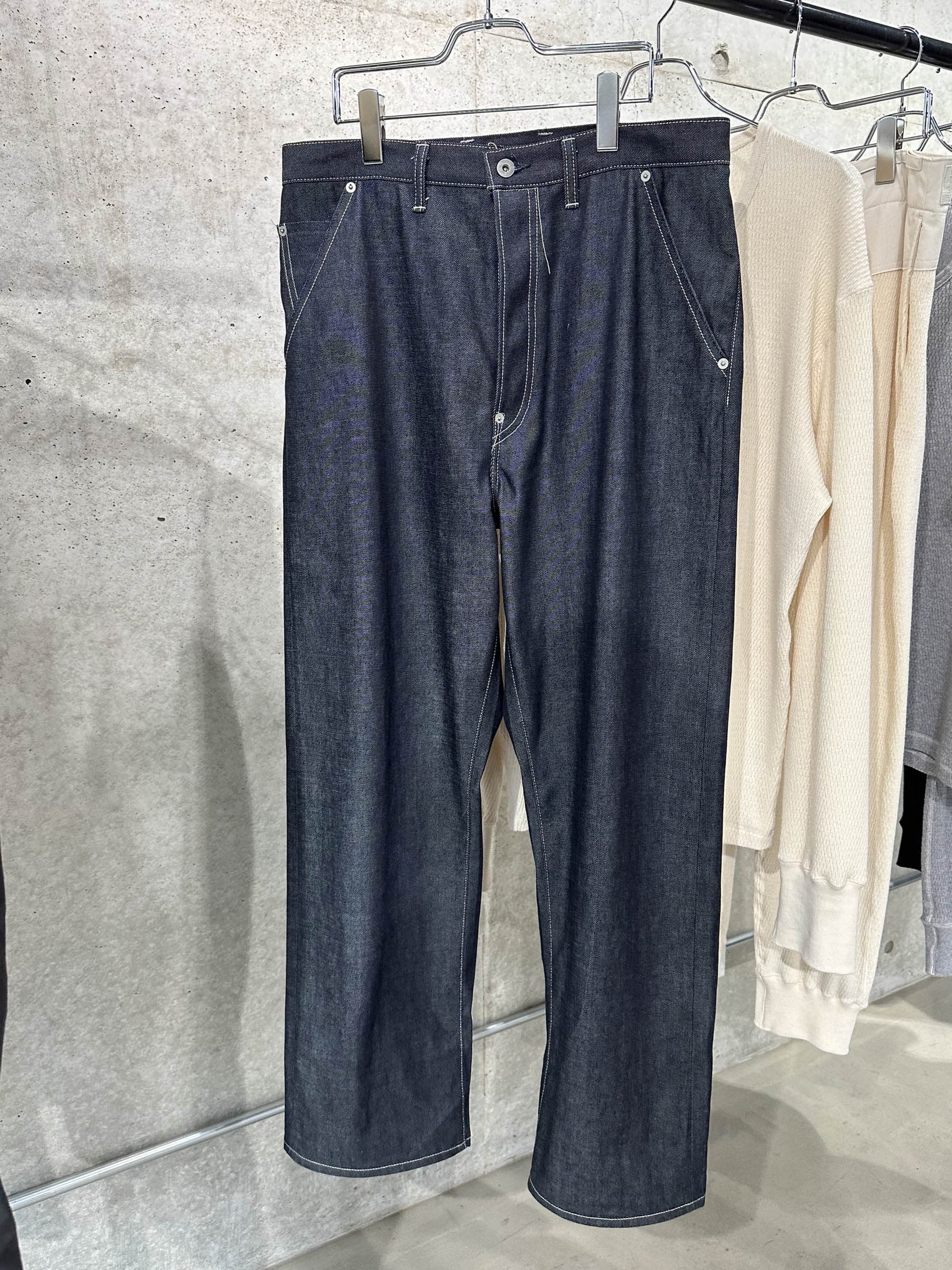 一方通行のクリエイションではなく、プロダクト、メーカー、ユーザーの3者の関係をより良くしたいというブランドの考え方を反映したデニムパンツ(4万1800円)は、雑多に縫製された古着のデニムによくみられる、異なる色の上糸と下糸で縫われたことで箇所によってステッチの色が異なるディテールに着目。上糸を生成り、下糸を紺色で固定し、「縫い手目線で合理的な縫い方を」と縫製工場に依頼して製作することで、縫い手の利き手によってステッチの向きが異なったり、縫い手一人一人が縫いやすい向きを上にしたステッチカラーが表出する。生産者が能動的に製作に関わり、上田の意図から独立したところでアイテムが完成するというプロセスを、“育てる”ことができるリジットデニムで表現した。