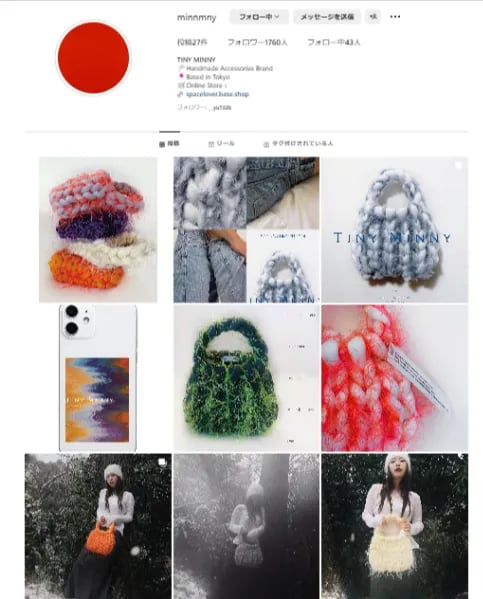 ハンドメイドブランド「TINY MINNY」を手がける現役大学生。個性的で目を引くバッグや、鮮やかな柄が美しいスカーフなど、ファッション小物を展開している。ファッション、インテリアともにスペースエイジデザインが好みで、古着やファッション?インテリア関連の古い洋書を集めがちなのだとか。普段Instagramではあまり見られない、センスフルな私服やお部屋にも注目したい存在。