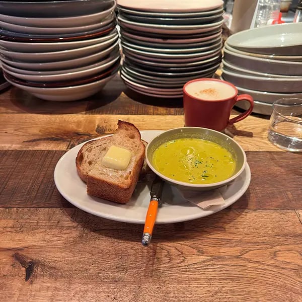 おすすめのメニューは、色鮮やかな野菜スープ。その時期が旬の野菜を使ったスープは、朝からエナジーチャージできそうです。