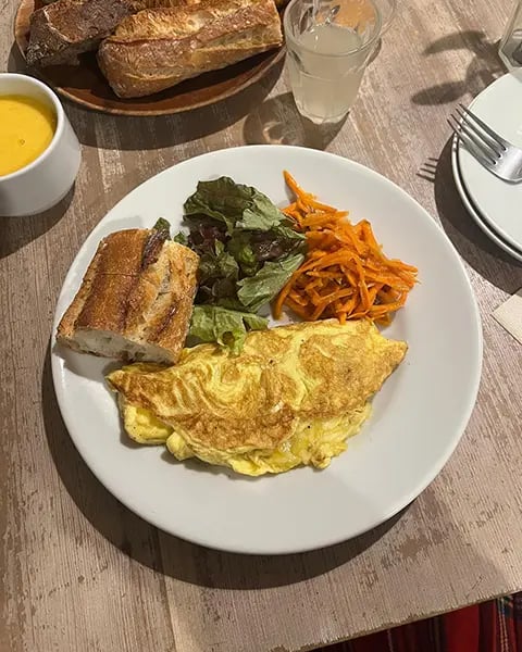 パンとセットにできる人気メニューが、ふわふわとろとろのオムレツ。パリの朝食をいただくような贅沢な時間を過ごしてくださいね。