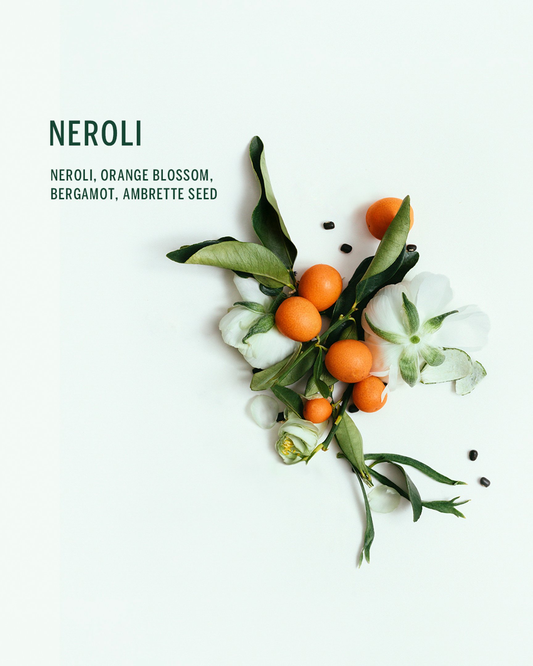シーソルト、ベルガモット、ホワイトムスク、ジャスミンがもたらす、清潔感のある香り。ビーチのそよ風や柔らかな花の香りを感じるパウダリーなシトラス調。 - NEROLI
