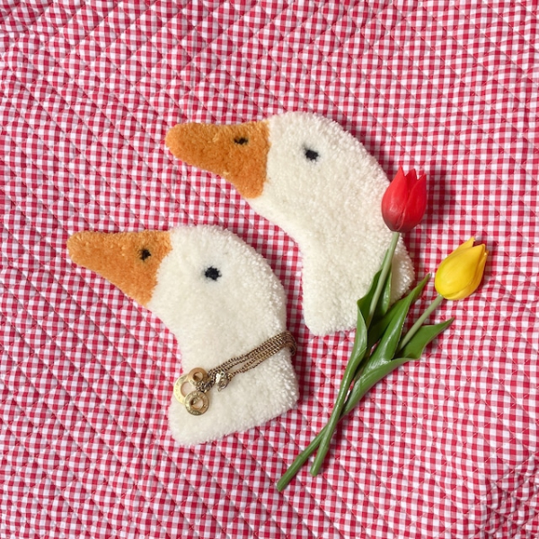 もこもこのアヒル型のミニラグは、つぶらな瞳のお顔がかわいい…。ひとつひとつ手作りなので、ちょっとずつお顔が違うのもお楽しみポイントです。