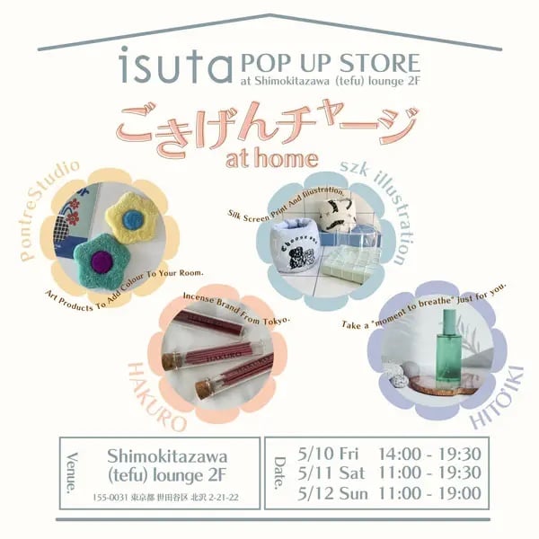 そんな「PontreStudio」の商品など、おうちで使うセンスフルなアイテムが大集合するWebサイト「isuta」主催のポップアップストア「isuta POP UP STORE -ごきげんチャージ at home-」が、5月10日(金)~12日(日)の3日間限定で、東京?下北沢の「(tefu) lounge」にオープンします!
