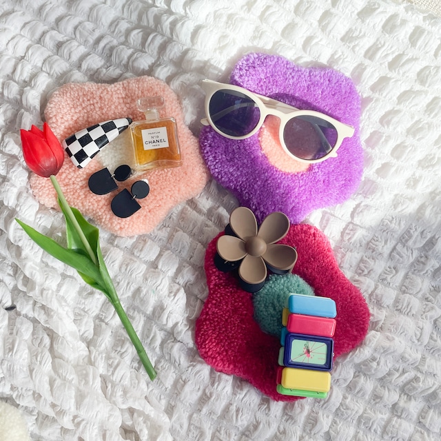 アクセサリー類やメガネ、ヘアクリップなど、ちょっとした小物を置いておくのに最適な大きさで、とっても使いやすい!ふわふわなラグ素材だから、アクセサリーに傷がつきにくいのも嬉しいポイントです。