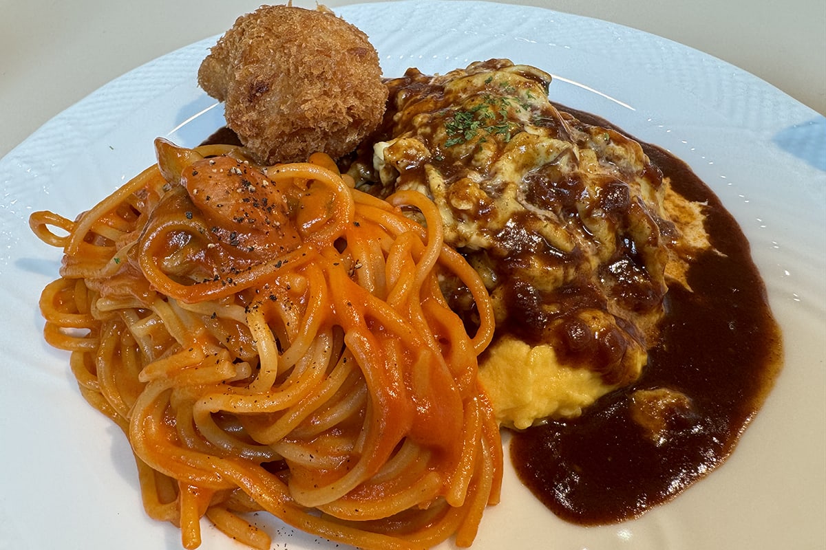 ふわとろたまごのオムライス ナポリタンのハーフ&ハーフ(1,380円)