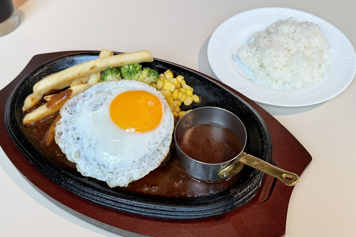 ただでさえおいしいハンバーグに目玉焼きを載せたら完璧って話。初めて友人たちと行ったファミレス体験を思い出すような、目玉焼きハンバーグはやっぱり特別だ。