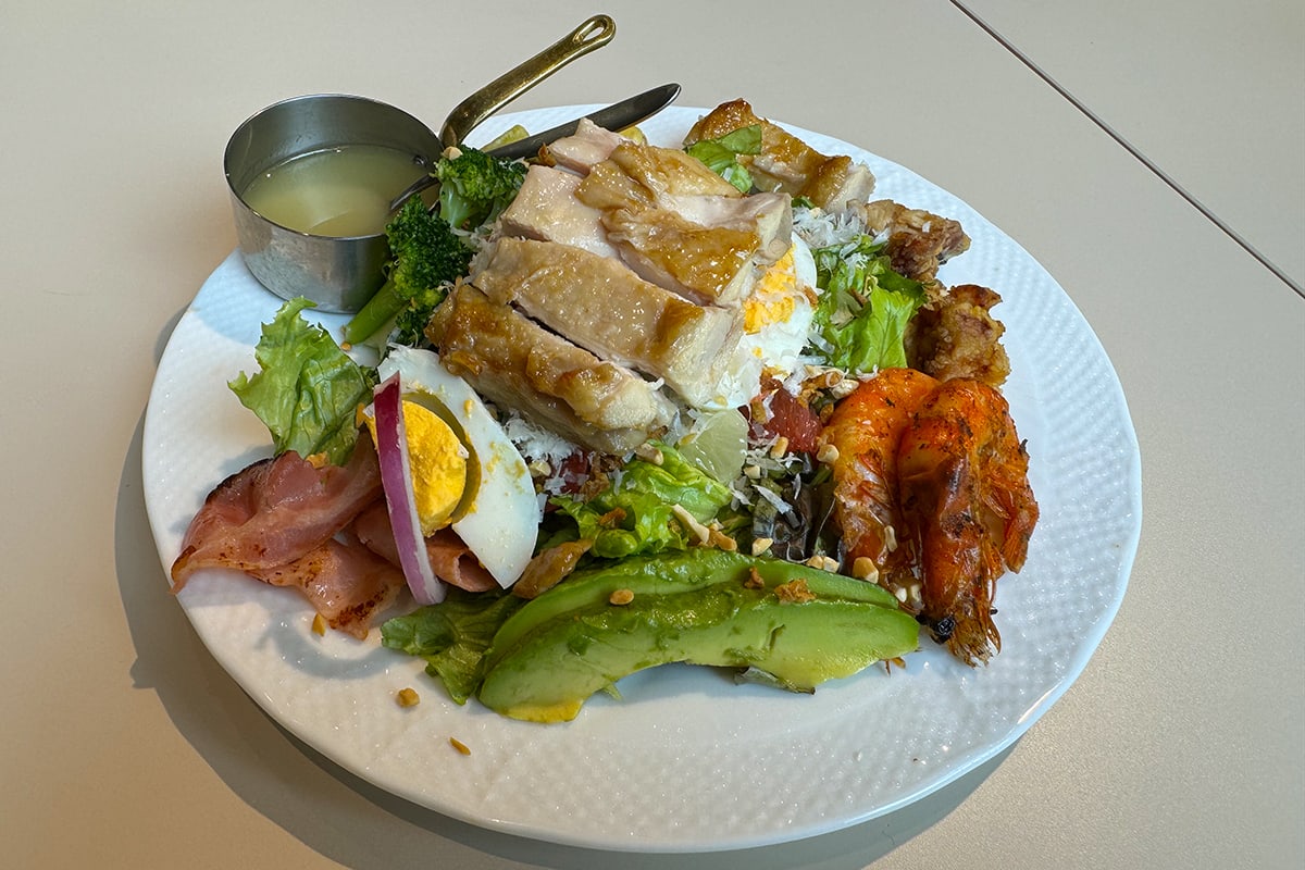 鳥羽シェフはファミレスを好きすぎてFAMiRESを作ったそうだけど、確かに、特にある店舗へのリスペクトを感じまくる。サラダも具材たっぷり。グリルチキンも添えて、これだけで大満足なサラダ。