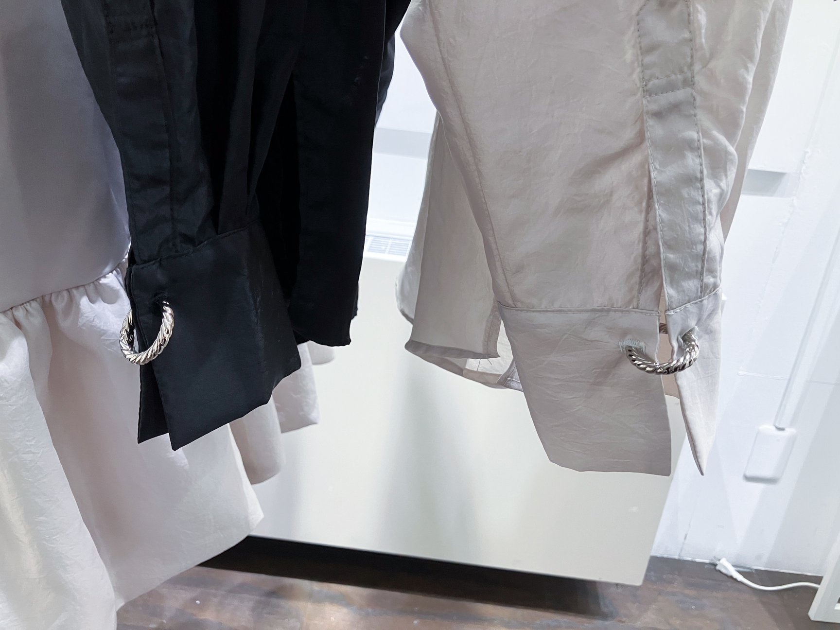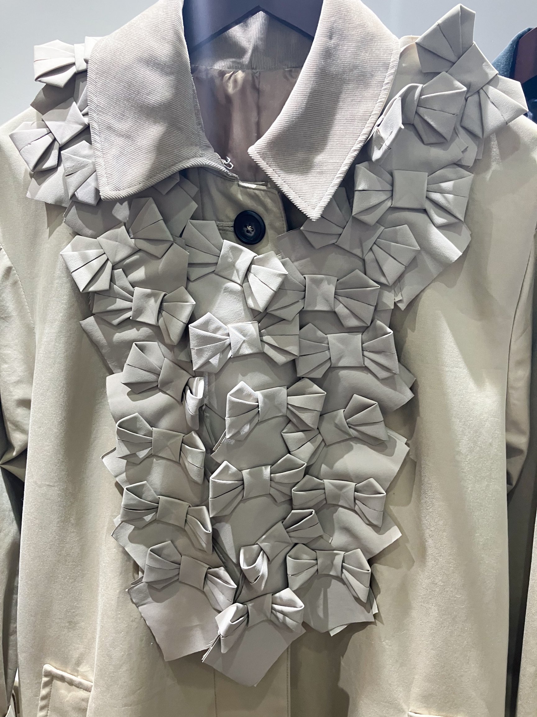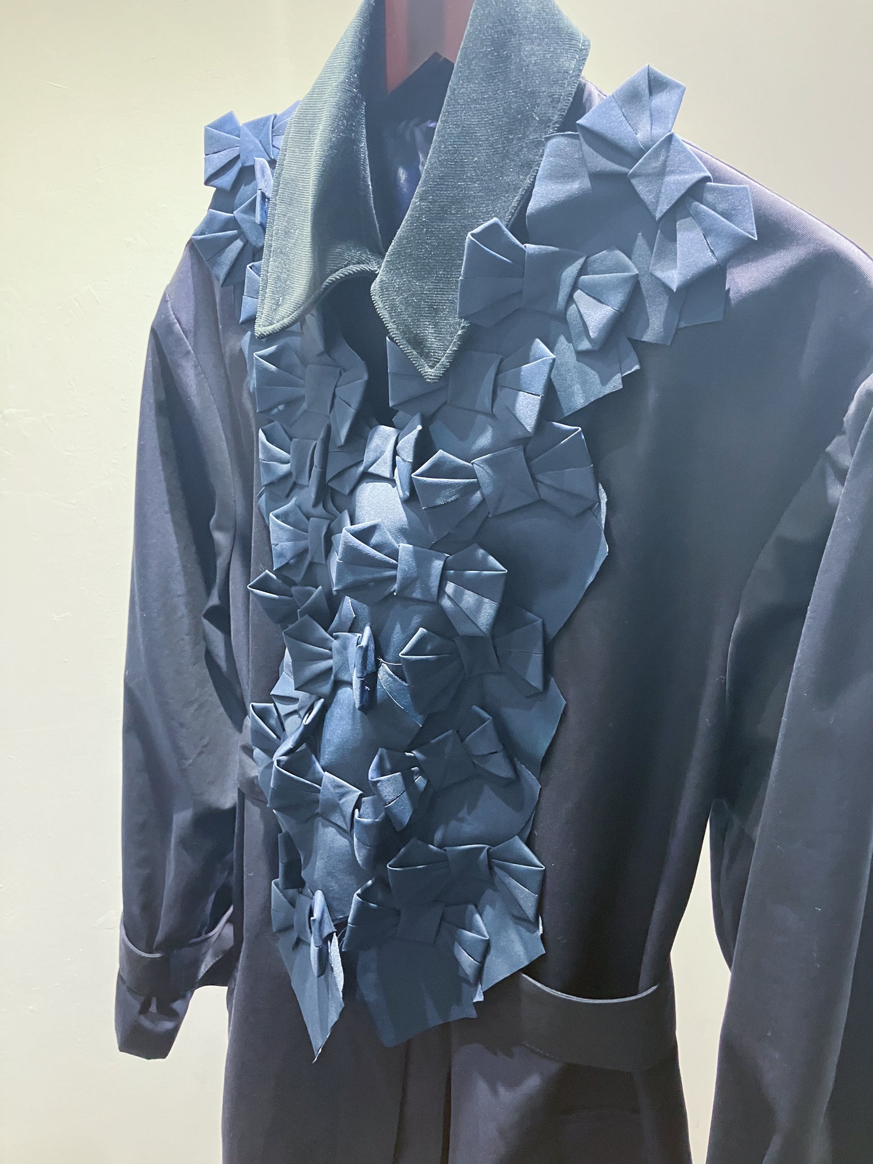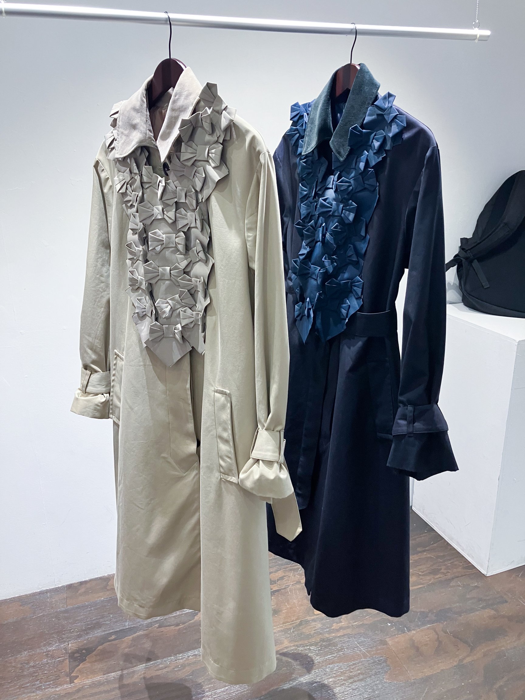 また、リアルクローズという観点からケアのしやすさにも配慮。素材にはポリエステルを用い、シャツとコートのリボンはスナップボタンで取り外し可能な仕様とするなど、デコラティブで立体的なデザインながら自宅での洗濯ができるアイテムに仕上げた。