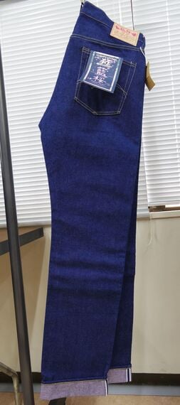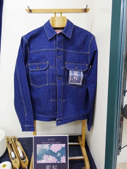 ほんのりと紫がかった藍色が特徴となるテーパードシルエットのジーンズとデニムジャケットがある。ジーンズが税抜き3万6800円、Gジャンは4万2800円。大きいサイズはプラス2000円。