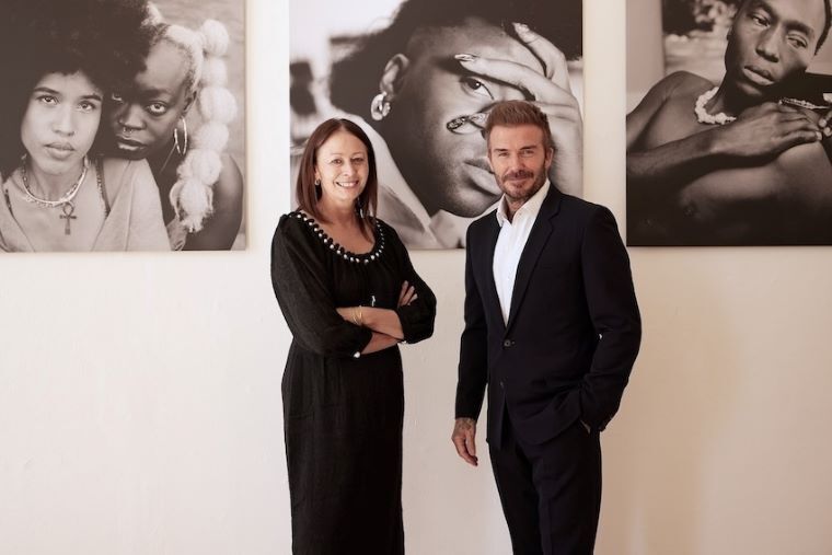 オープニングイベントで開幕宣言をしたアンバサダーのデヴィッド?ベッカム(右)と英国ファッション協会のキャロライン?ラッシュCEO。