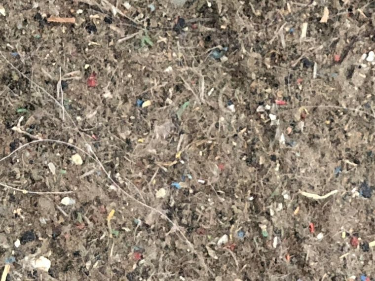 会場となった馬小屋のリサイクルファブリックが敷き詰められた地面