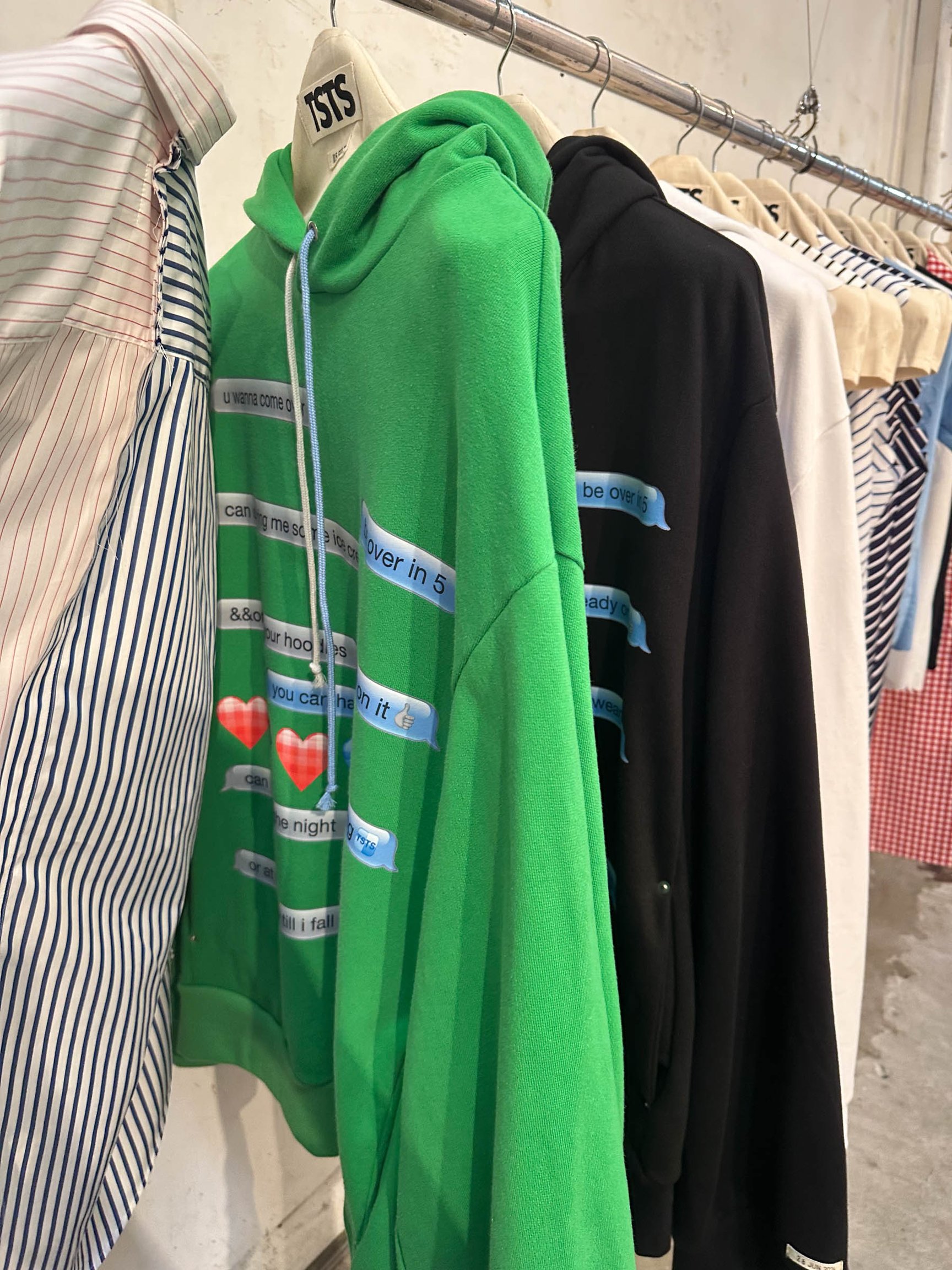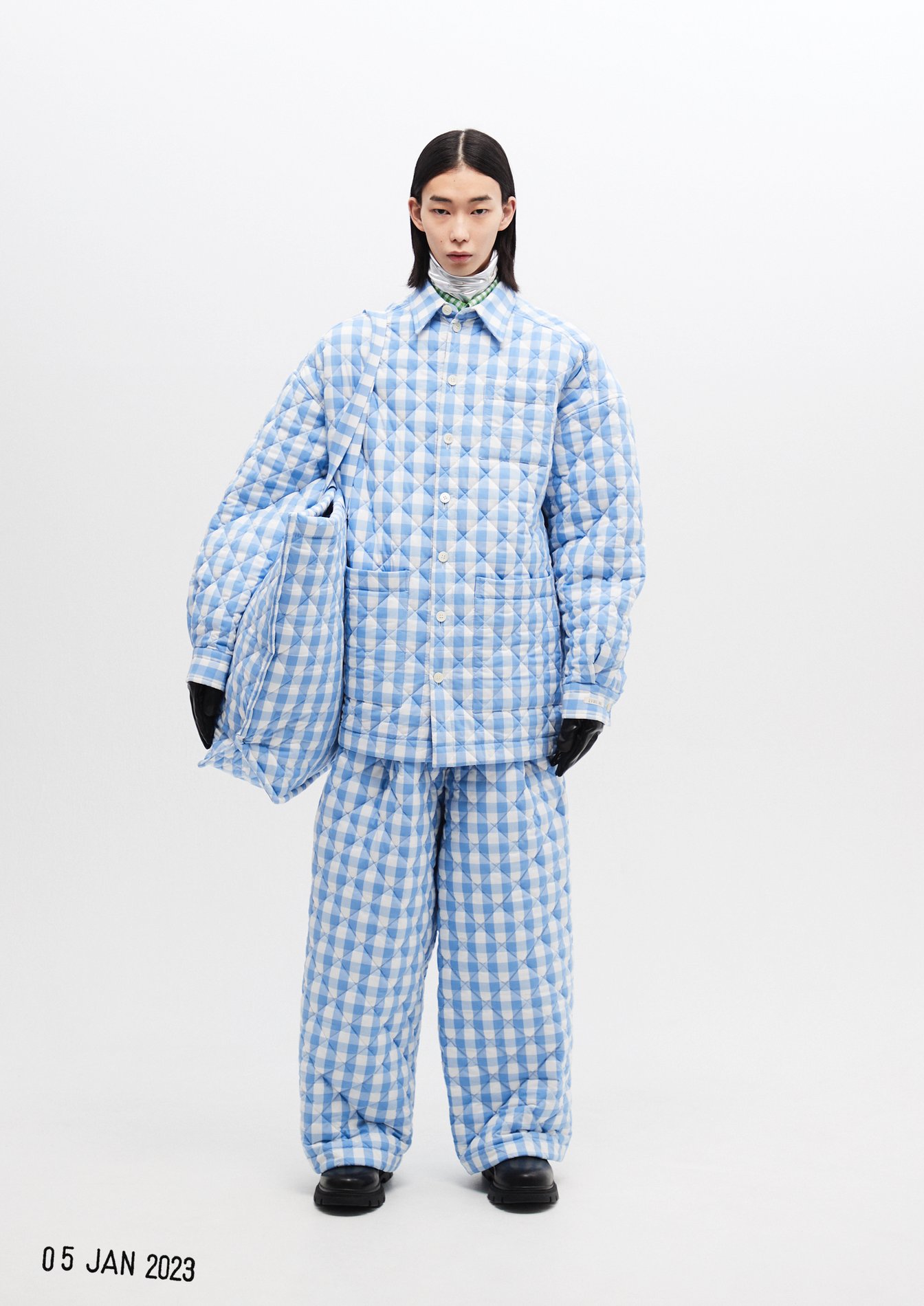 アイテムには、吹き出しやオリジナルでデザインした絵文字のグラフィックが大胆にプリントされたジャケットやフーディー、吹き出しのもくもくとしたラインのカッティングが施されたジャケットやTシャツなどをラインナップ。デビューコレクションから使用してきたカラフルなギンガムチェック柄を押し出す柄展開で、さらにブランドの特徴を強く印象付けた。
