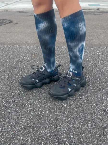 maaya:サンダル×ソックスのコーデ、スポーティな雰囲気で素敵です!「NODAL」の靴下はなぜ愛用されているんですか?
