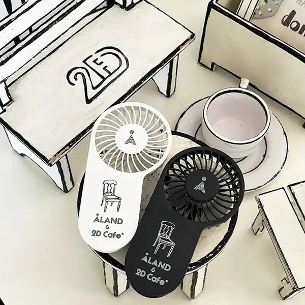 コラボアイテムには、暑~い今の時期に欠かせないハンディファン「ALAND×2DCAFE ハンディファン」(税込3990円)も登場。