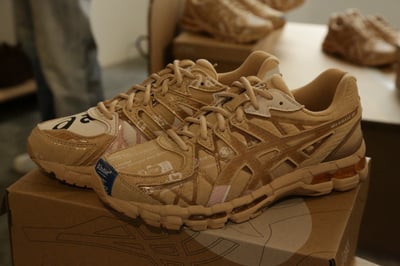 同アイテムは、パリファッションウィーク中に開かれたポップアップストアで世界先行発売。ミッドソールの大部分にGELテクノロジーを採用した高機能クッションモデル ゲルクォンタム 360 VIIIから初のウィメンズアイテムで、フェミニンなビジョンをデザインに落とし込み、サンダルのようなシューズに仕上げながらもゲルクォンタムシリーズの高機能なツーリングも生かしたという。また、アッパーはメッシュアッパーに透明感のあるパーツを重ね合わせ、アウトソールパーツにはさりげない花柄の上に透け感のあるラバーを配した。カラーは「SILVER×CLEARLY AQUA」と「SILVER×BLACK」の2色展開で、サイズは0.5cm刻みで22.5~28cmまで用意する。価格は3万7400円。
