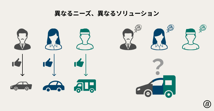 ここで、「あらゆる消費者のニーズに応えるために、さまざまな機能を詰め込んで全員のニーズをカバーしたらよい」と考える方もいるかもしれない。しかし、さまざまなことができるが自分の課題を少しだけしか解決できない「万能」な商品は選ばれなくなってきている傾向にある。