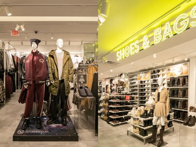 GUニューヨーク1号店はソーホー地区のブロードウェイ沿いにある。隣はノースフェイス、通り沿いでエリアの北側にはアメリカンイーグルやハーレーダビッドソン、南側にはアバクロンビー&フィッチ、ラコステ、ナイキと著名ブランドが軒を並べる。1号店の立地にはかつてはアルマーニエクスチェンジやヒューゴボスなども出店していた。まさに有名店が鎬を削るダウンタウンのブランドストリートの一角だ。