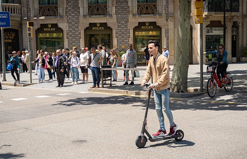 バルセロナ市街地には自動車が侵入禁止の道が多くあたり、時間によりバリケードが設置され、自動車が入れないようにしている。これにより、安全にeスクーターが利用可能になる。