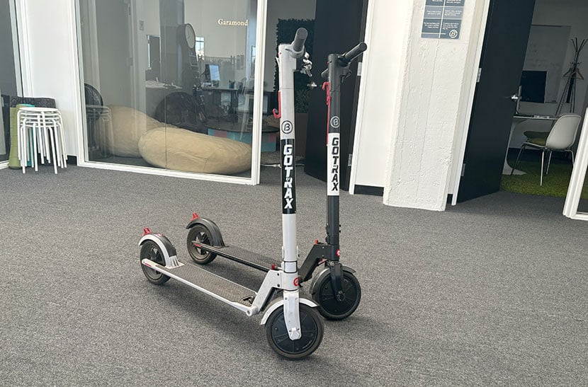 btraxのオフィスに置かれたeスクーターの Gotrax