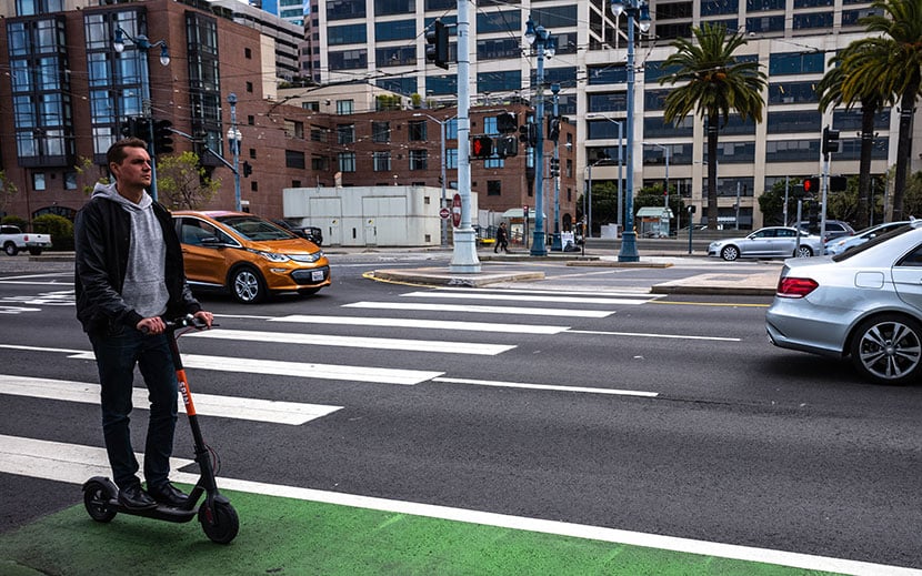まずはbtraxの本社のあるサンフランシスコでは、市民の日常の足としてかなり重宝している。市内のいたる所にBirdやLimeなど、複数のシェアリングeスクーターが置かれ、アプリ経由で気軽に利用することが可能。