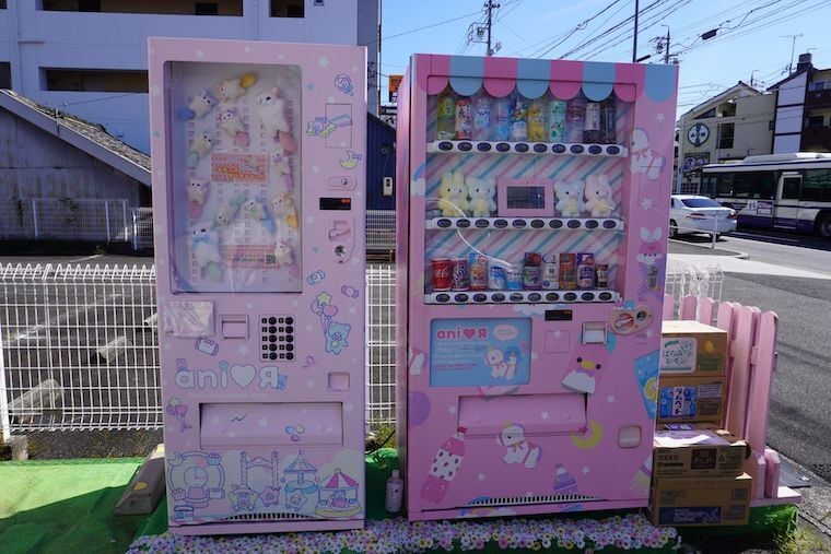 「興味はあるが、お店に入る勇気はない人」には、店外にぬいぐるみの自動販売機が設置されている。自販機ももちろん「黒NG」のオリジナルデザイン。SNS映えもするが、人の目を気にせずに買えるため夜間によく売れるという。