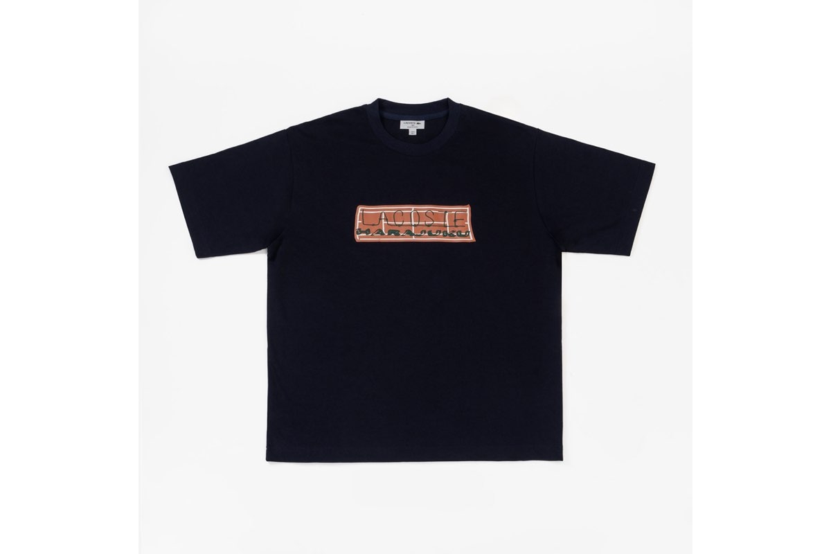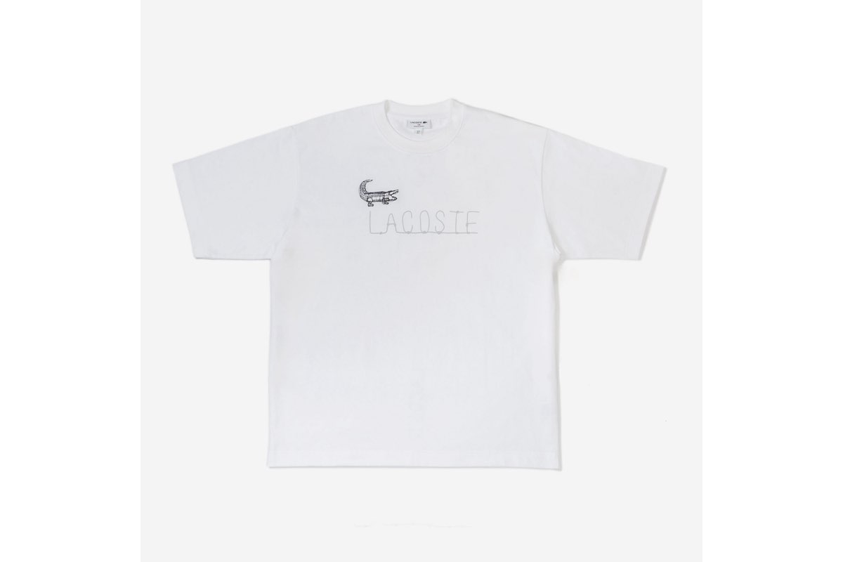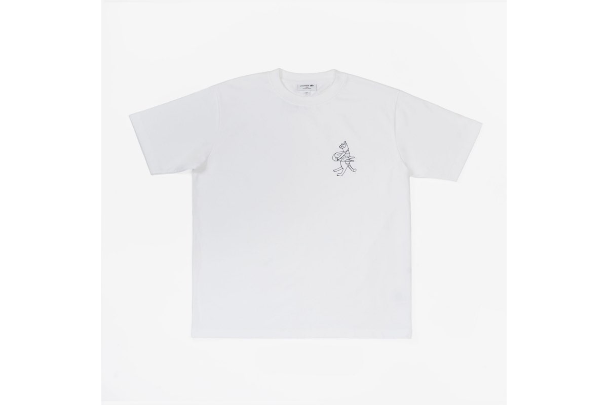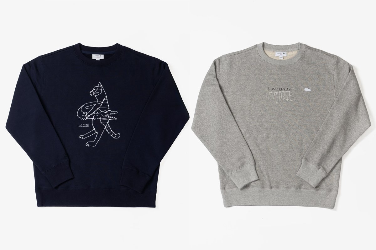 コラボグッズは、HAyU/小川学の作品アイコンでもあるネコがラコステのワニを抱えたデザインや、テニスの聖地、ローラン?ギャロス(フランス)のクレーコートをイメージしたロゴ?グラフィックがモチーフ。プリントと刺繍で表現し、作品の一部は、実際にワイヤーで試作したものを2Dに落とし込んだ特別なコレクションとなる。
