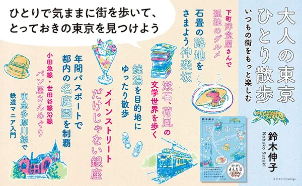 『大人の東京ひとり散歩 いつもの街をもっと楽しむ』は、まち歩きのプロである著者が、ソロ散歩体験とプランを紹介しているお散歩エッセイ。