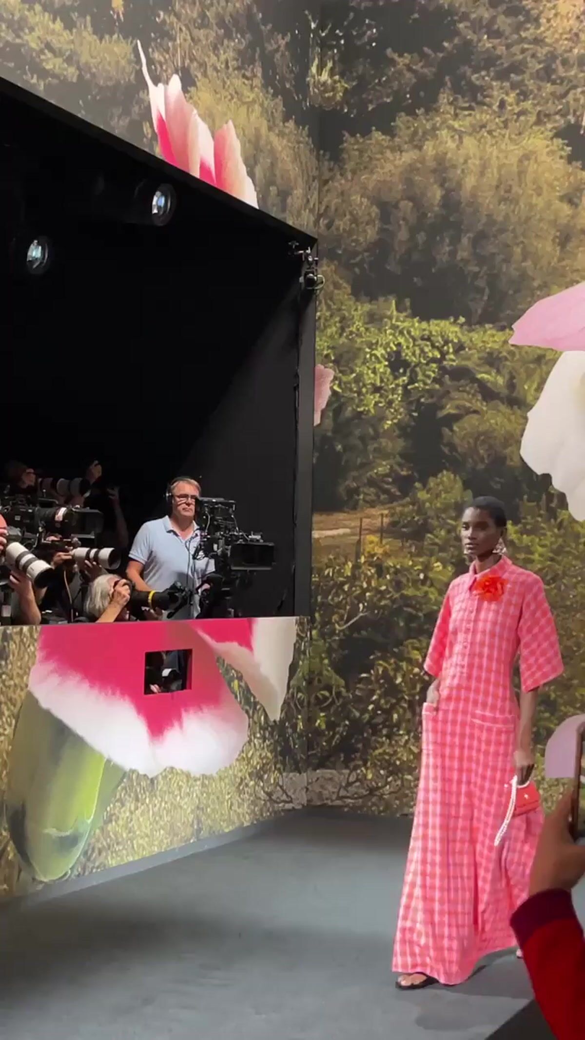 ロバート?マレット=スティーブンス(Robert Mallet-Stevens)によって設計されたこの建築は、今年着工100周年を迎える。丘の上にあるモダニズム様式のヴィラは牧歌的な雰囲気に満ちており、ガブリエル?シャネル(Gabrielle Chanel)と親交のあったアーティストたちが集う場所でもあったという。ショー会場には、南仏の入江と花のイメージがスクリーンに映し出され、ヴィラの庭園が持つ幾何学模様がパッチワーク、チェック柄、ストライプといったデザインに取り入れられた。